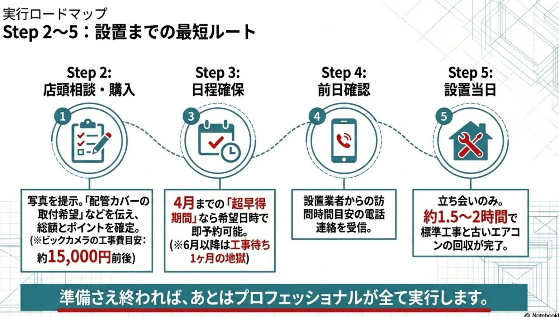 ビックカメラの店舗で購入し、設置完了までをスムーズに進めるための手順をまとめました。