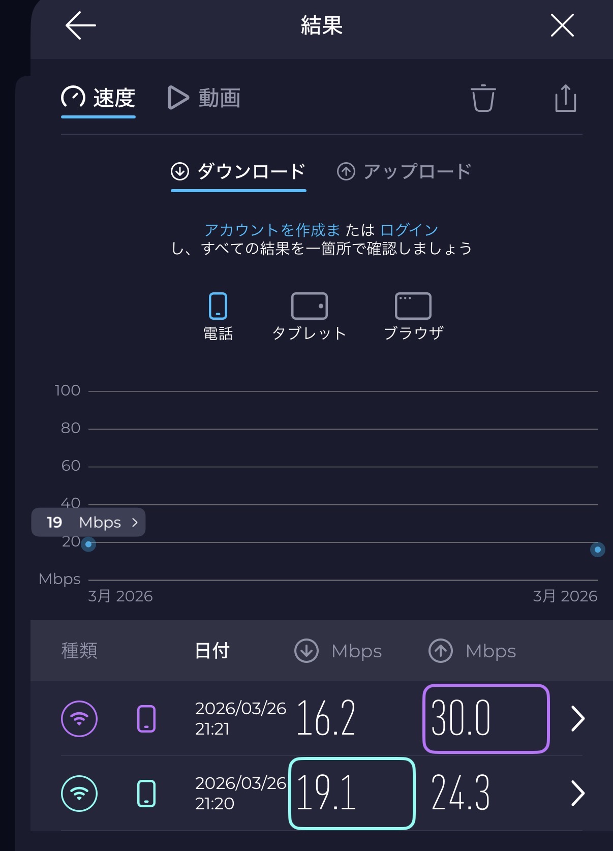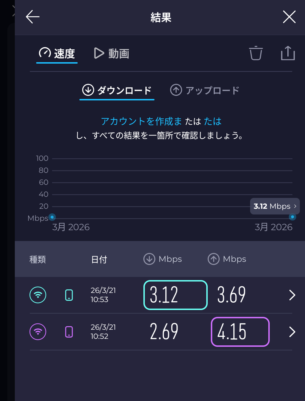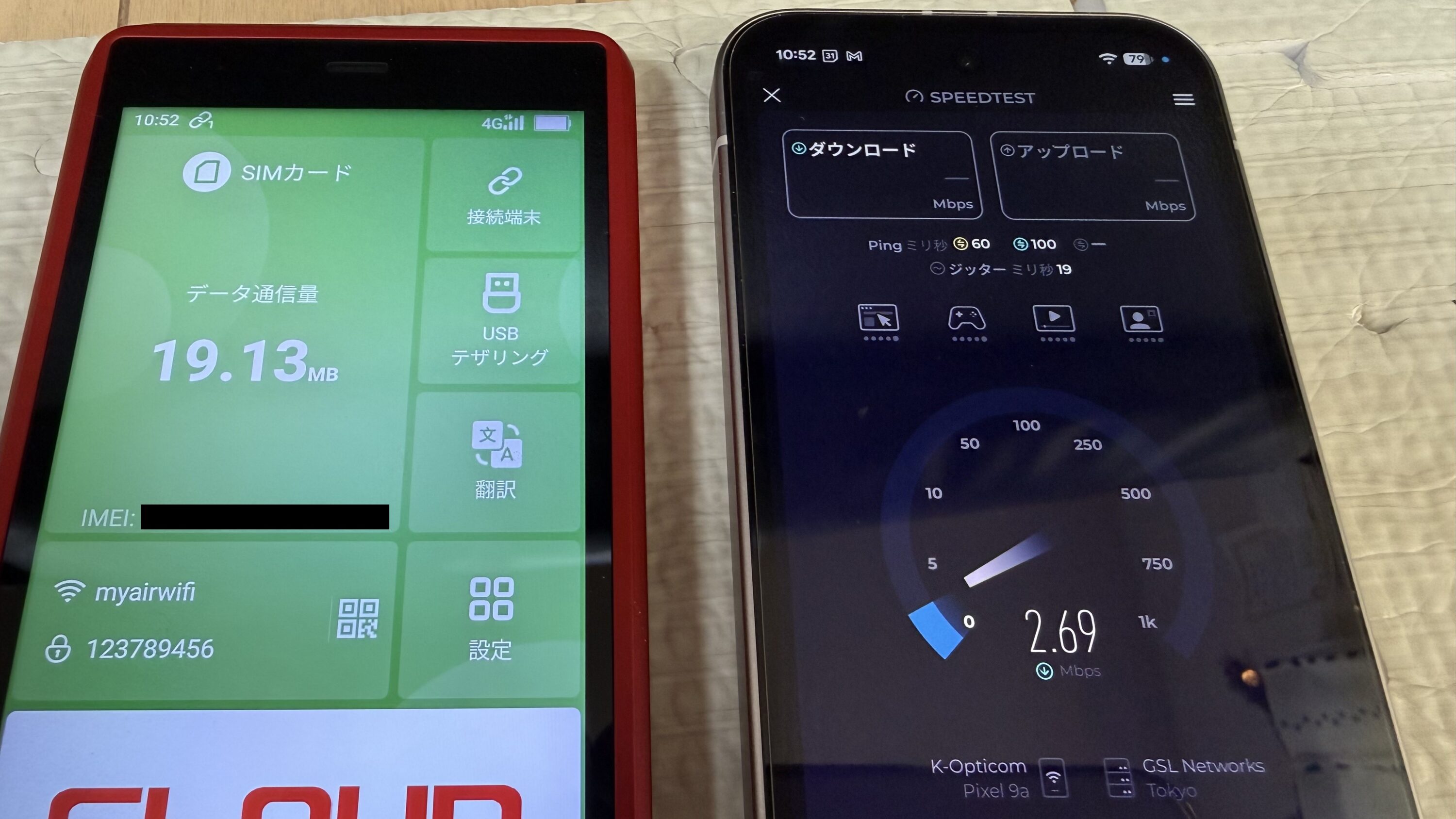 - スピードテストアプリで通信速度を比較