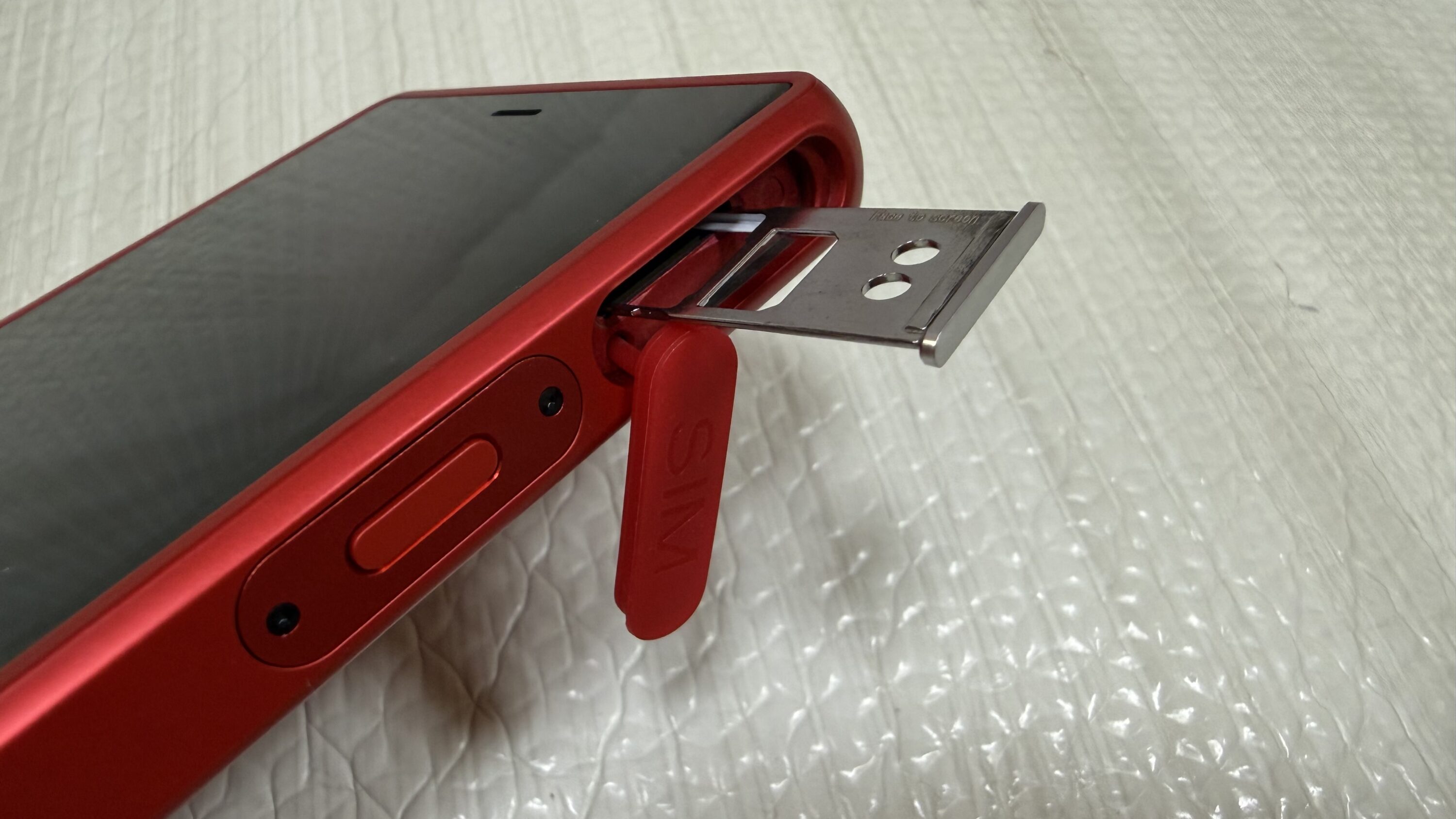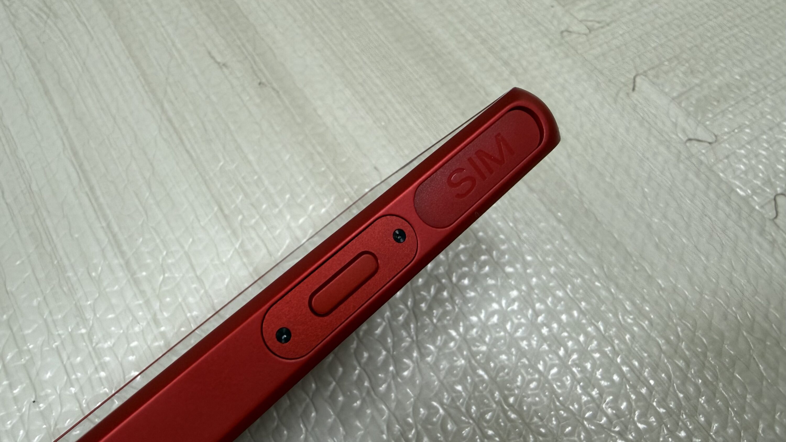 「SIM」と書いてある部分にnanoSIMを挿入するスロットが格納されています。もうひとつのボタンは電源ボタンです。