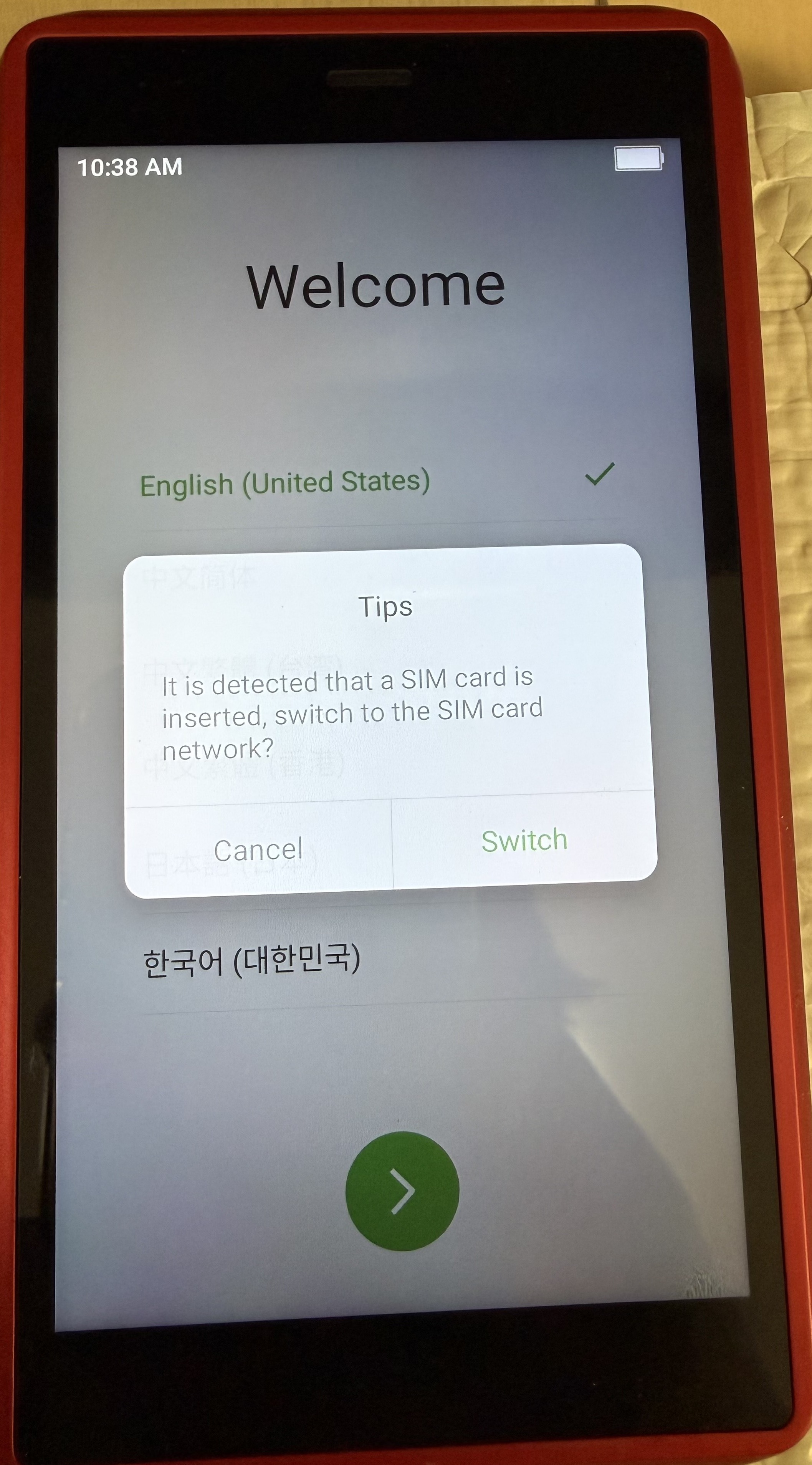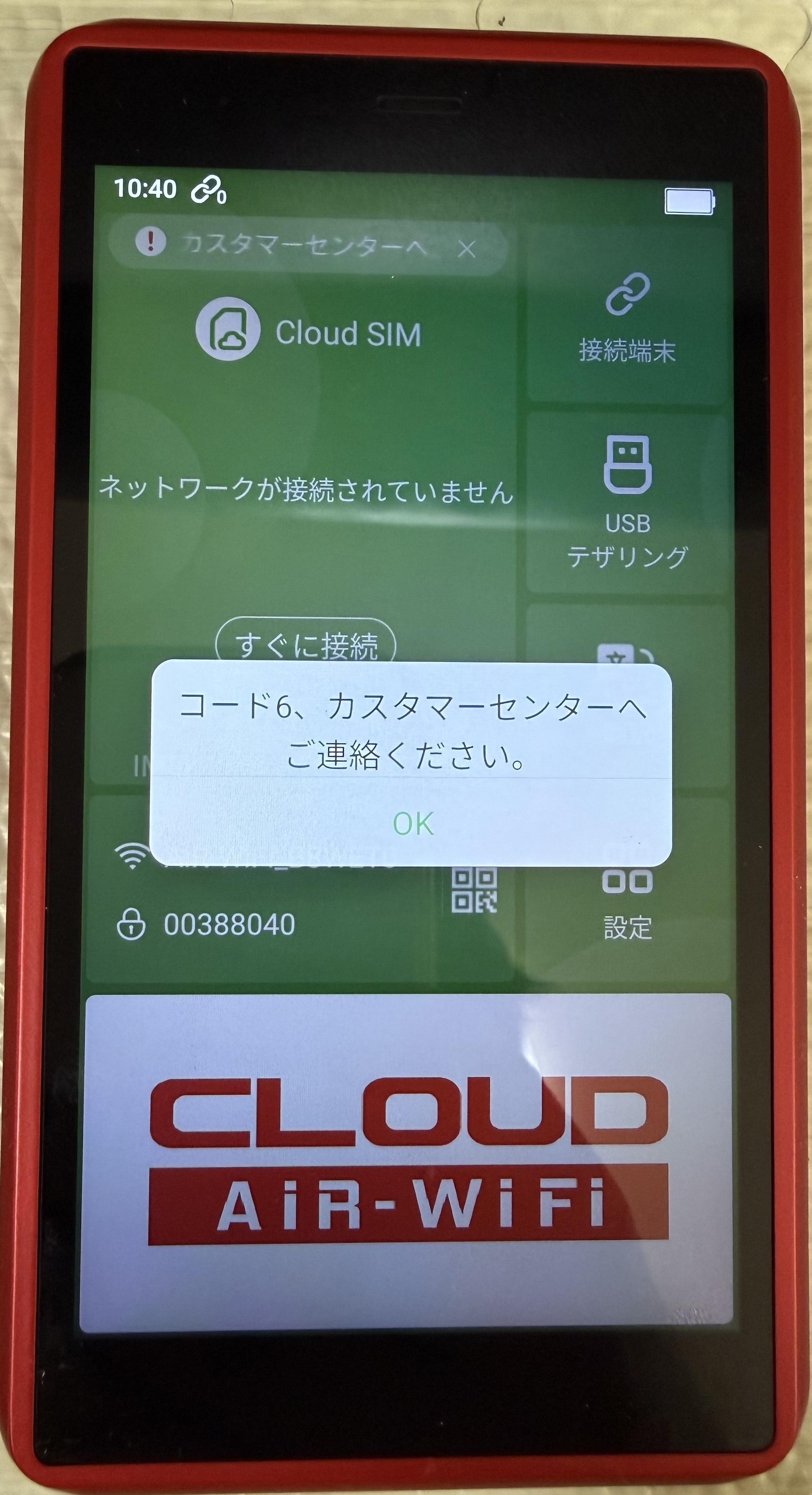 SIMカードが使えない旨の表示があります。
