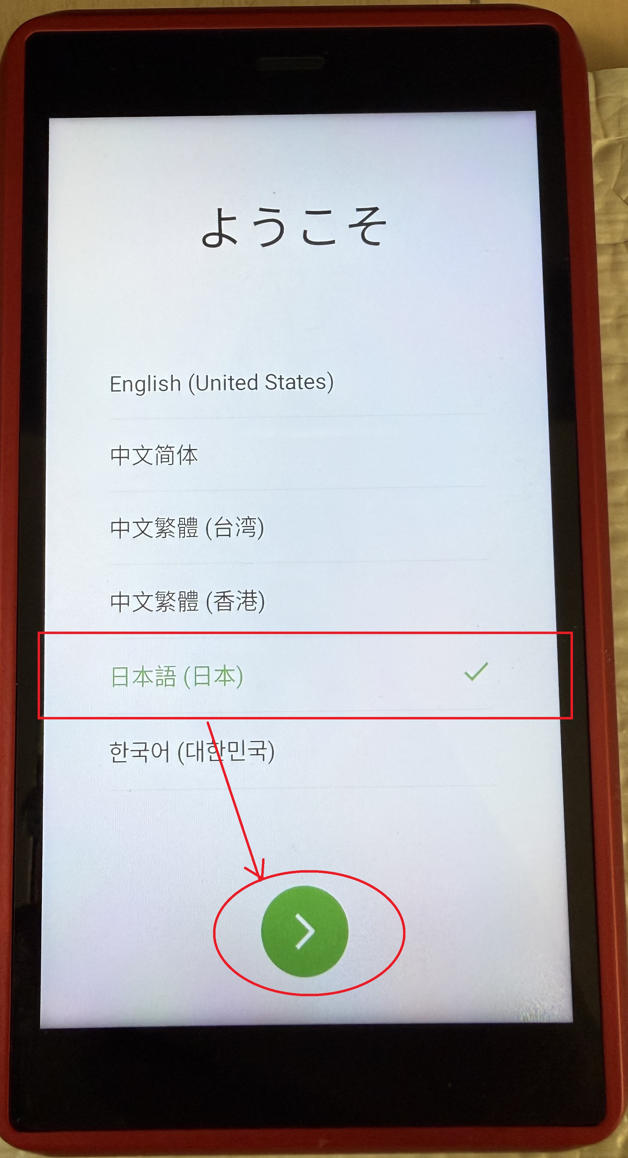 画面上部の部分の左側を日本語を選択します。