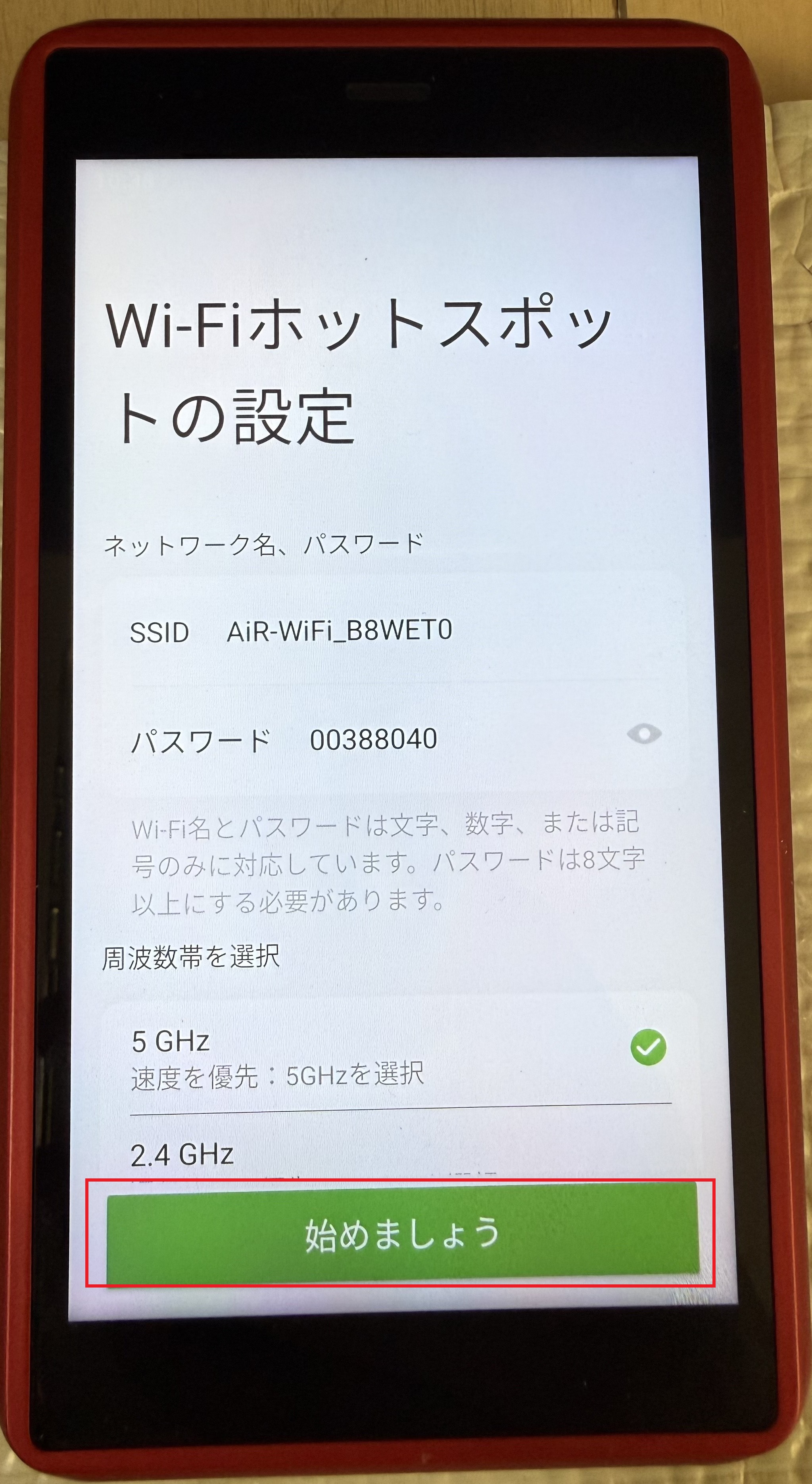 好きなSSIDとパスワードを設定しましょう。