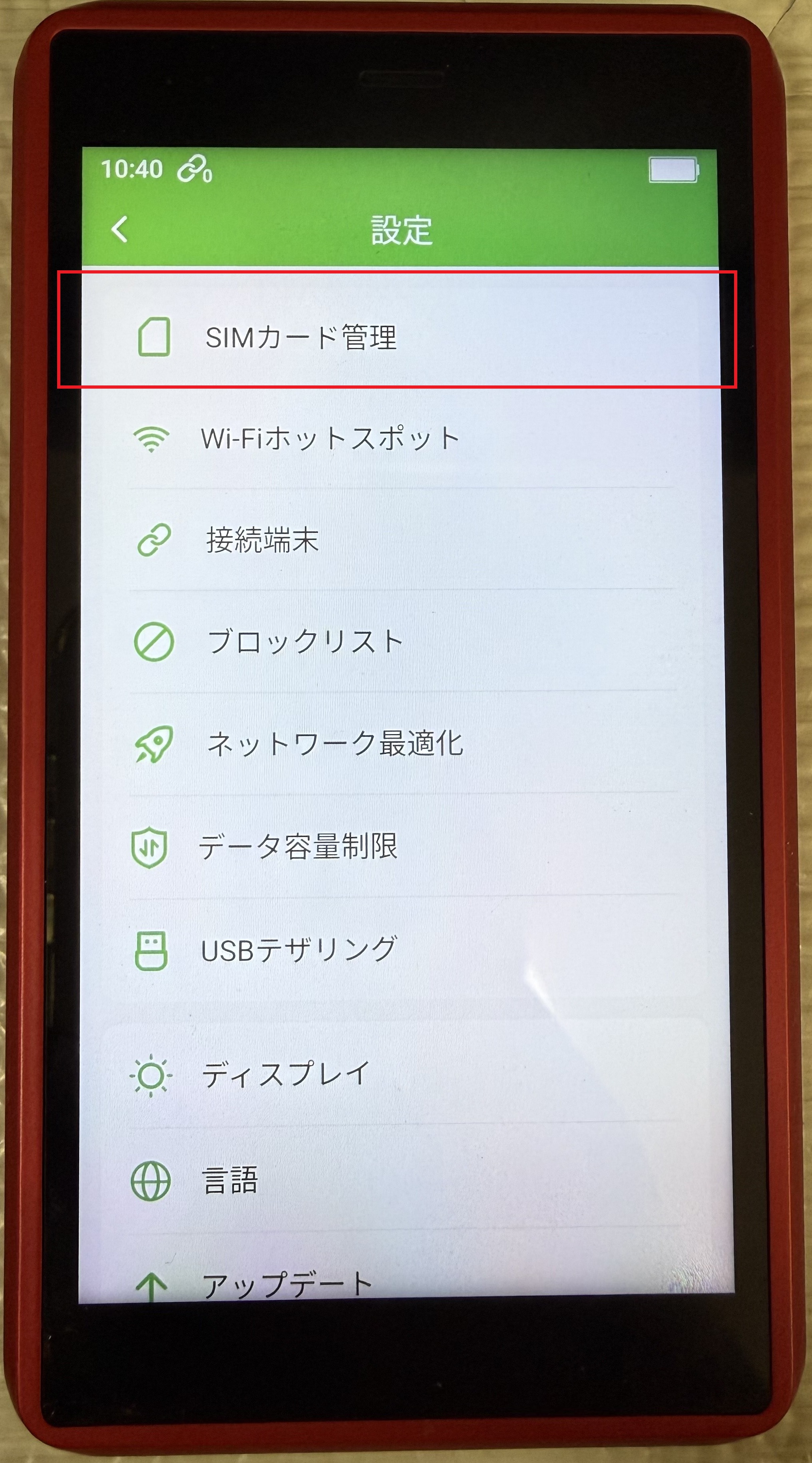 SIMカード管理をタップします。