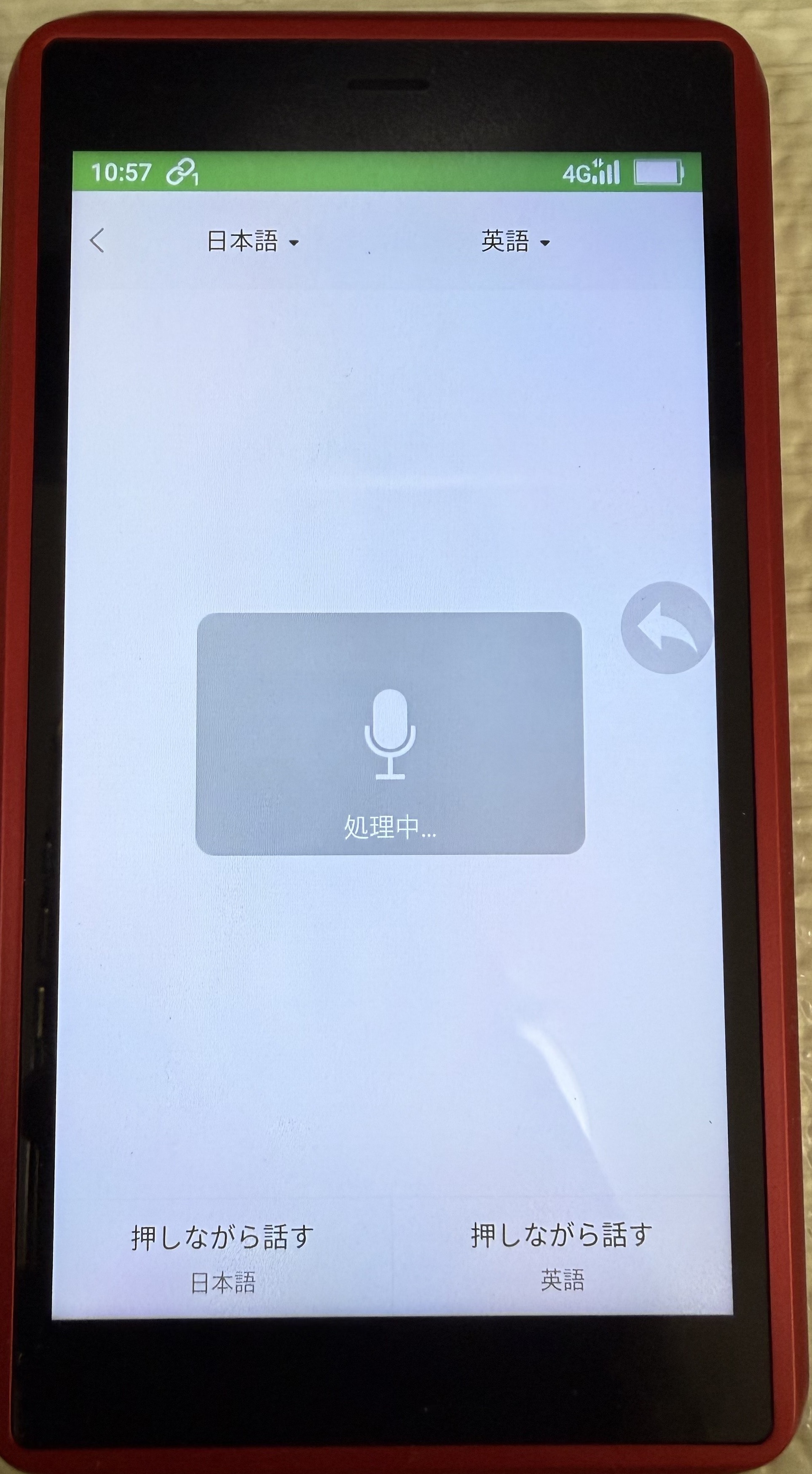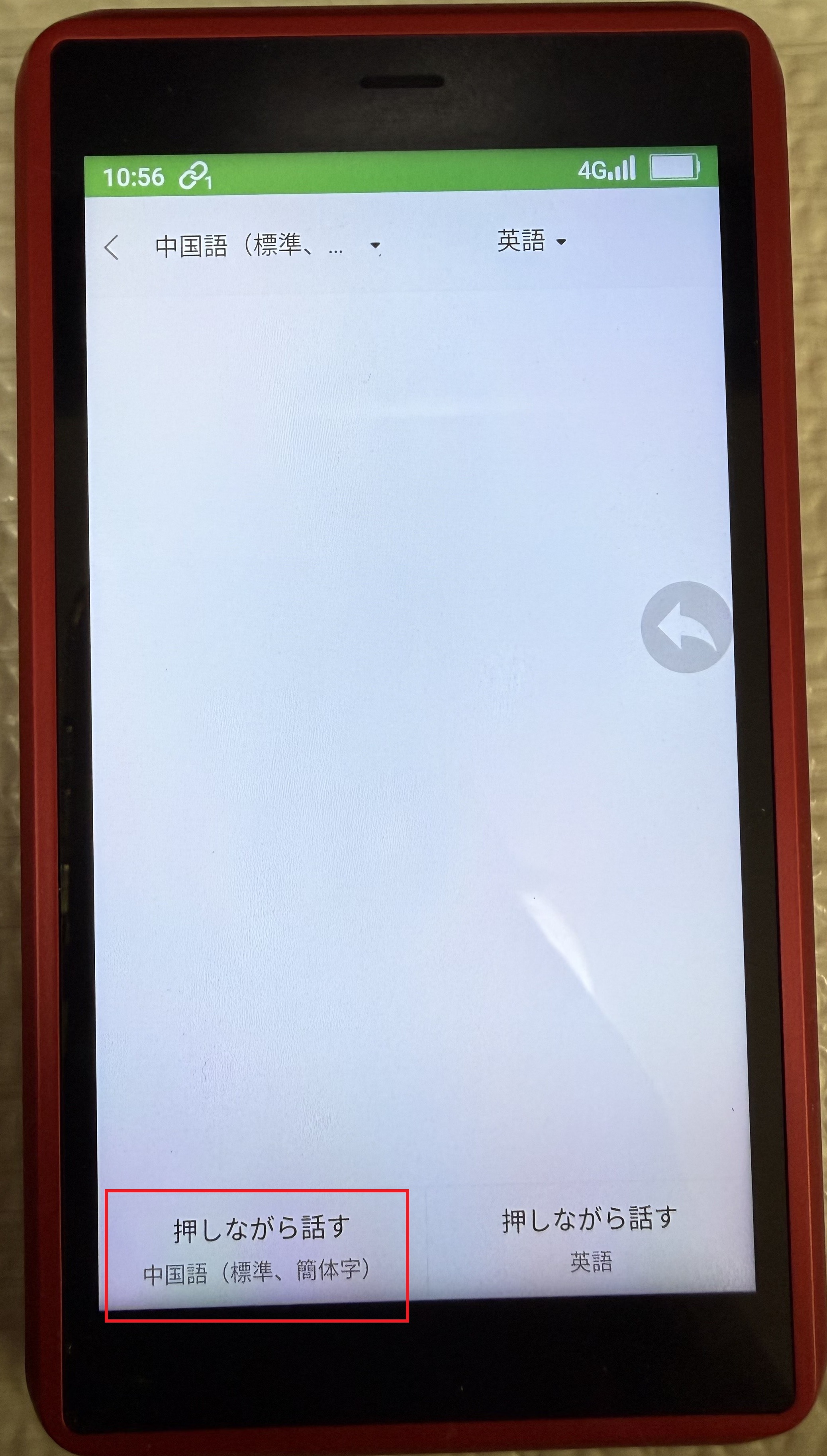 そして、「押しながら話す」を指でタップし続けらながら口頭でしゃべります。
