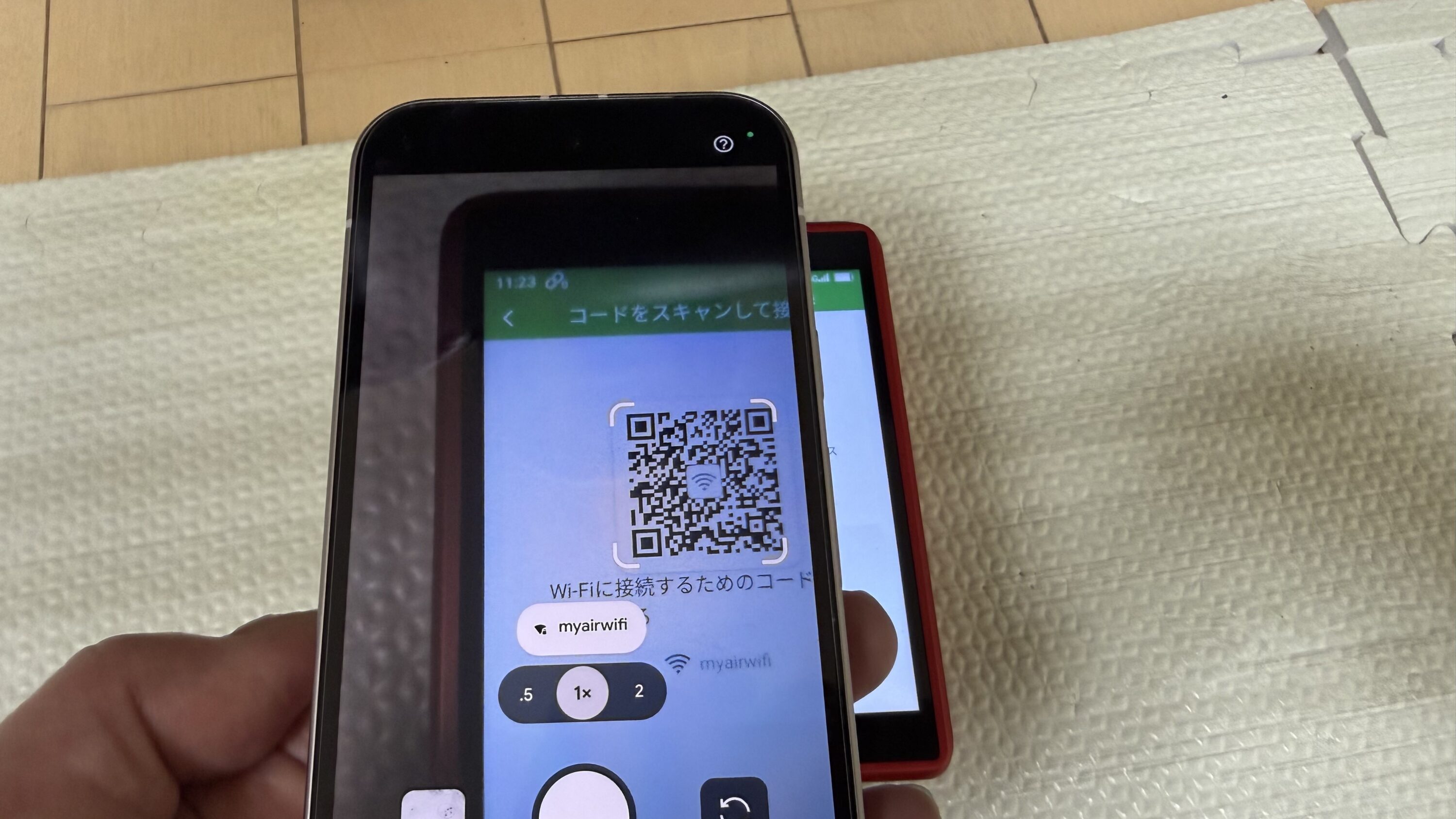 また、上部画像のQRコード部分をタップして、AIR-tra1に表示されるQRコードをスマホで読み取ってもアクセスできます。