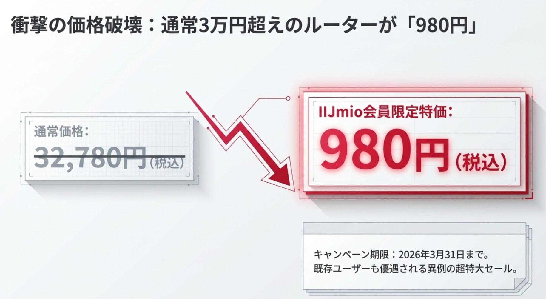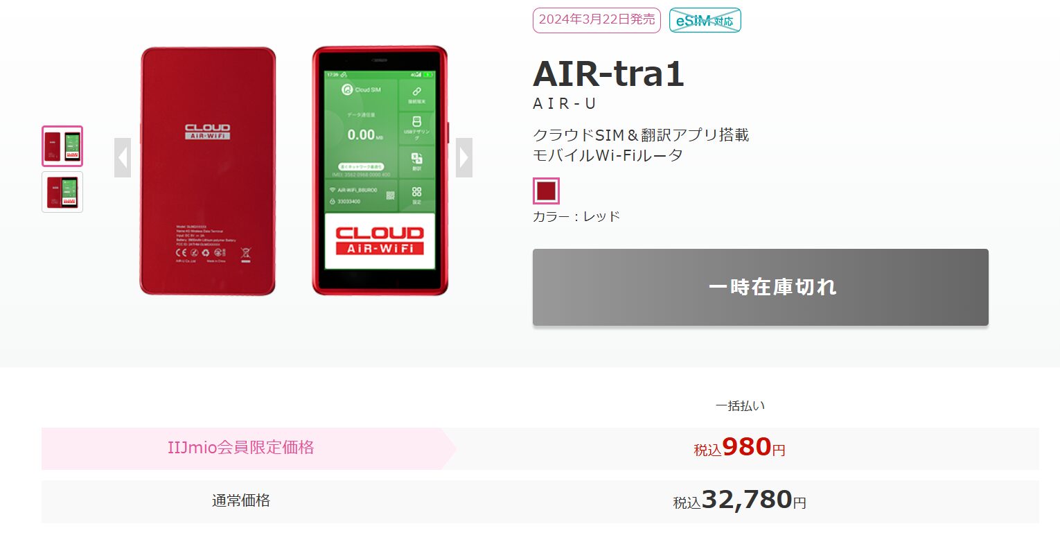 AIR-tra1の一括980円セールは2026年3月31日までです。IIJ-mioユーザの方はぜひお早めのご購入をおすすめします!