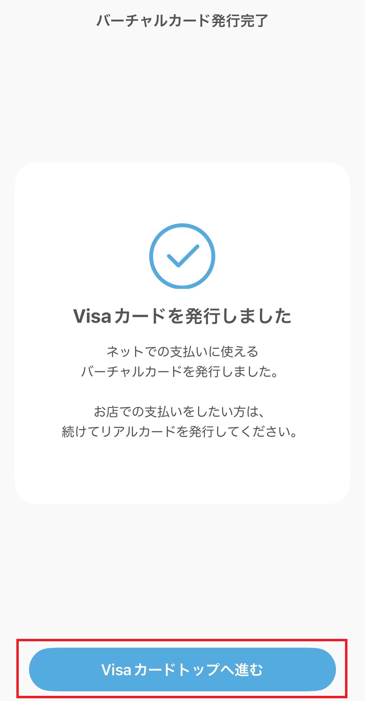 VISAカードの発行が完了します。