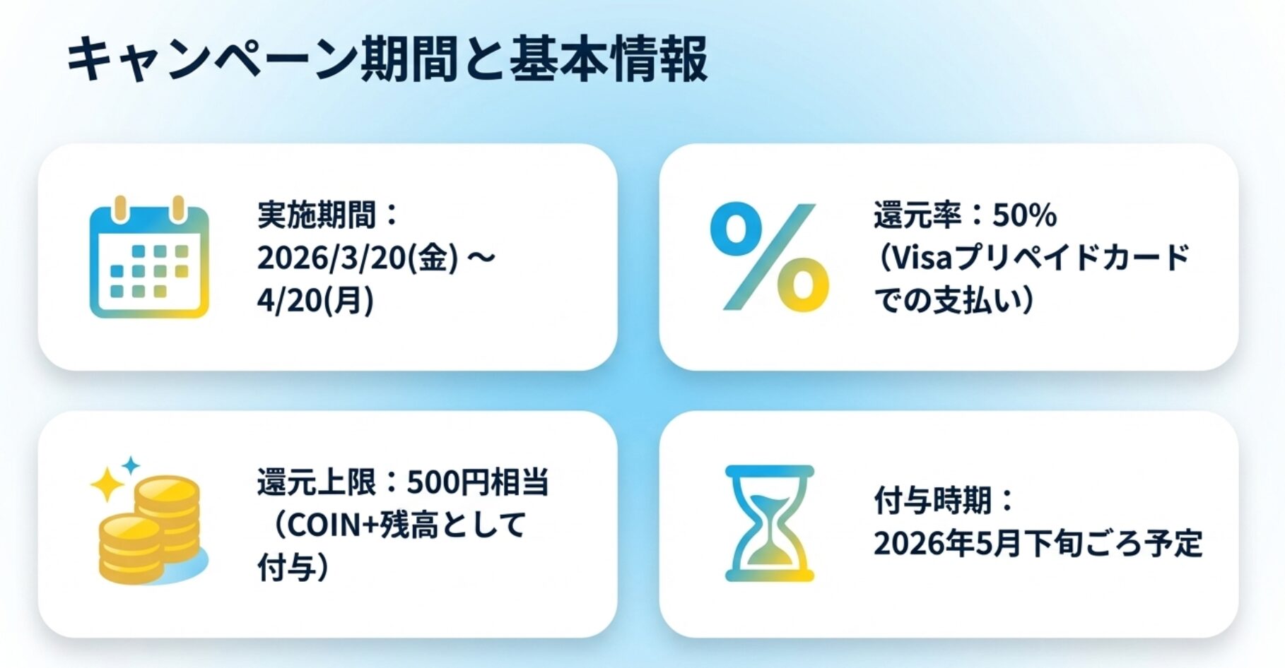 | 還元上限 | 500円相当のCOIN+残高 |