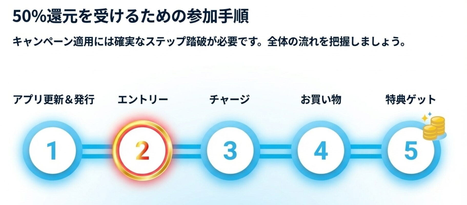 キャンペーンの適用を受けるには、いくつかのステップが必要です。「ただ使うだけ」では対象外になる可能性があるため、以下の手順を確実に進めてください。