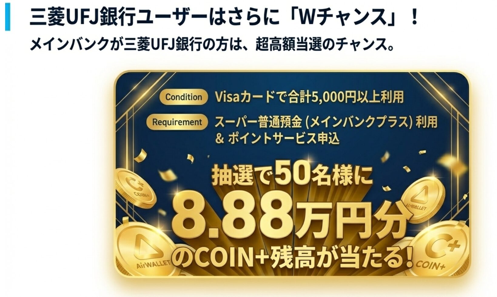 三菱UFJ銀行ユーザーはさらに「Wチャンス」!