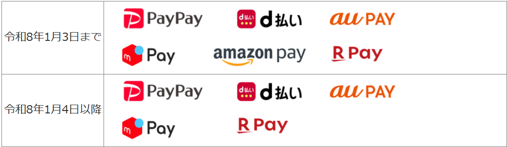 - 2026年1月4日から:新ルール適用(Amazon Pay廃止)