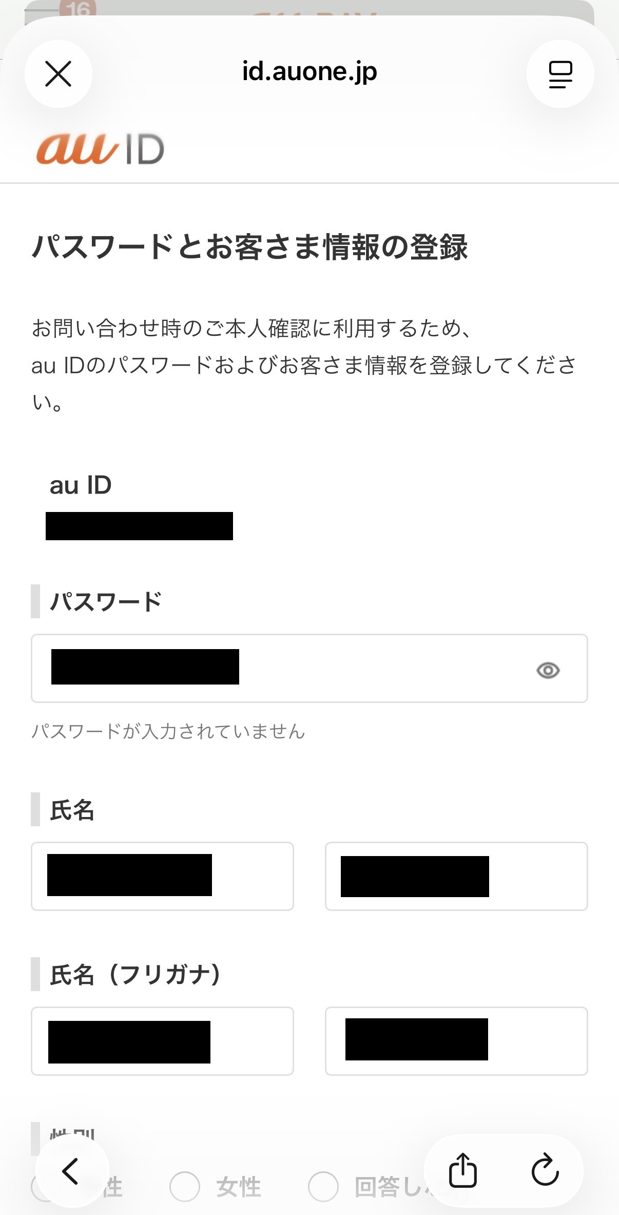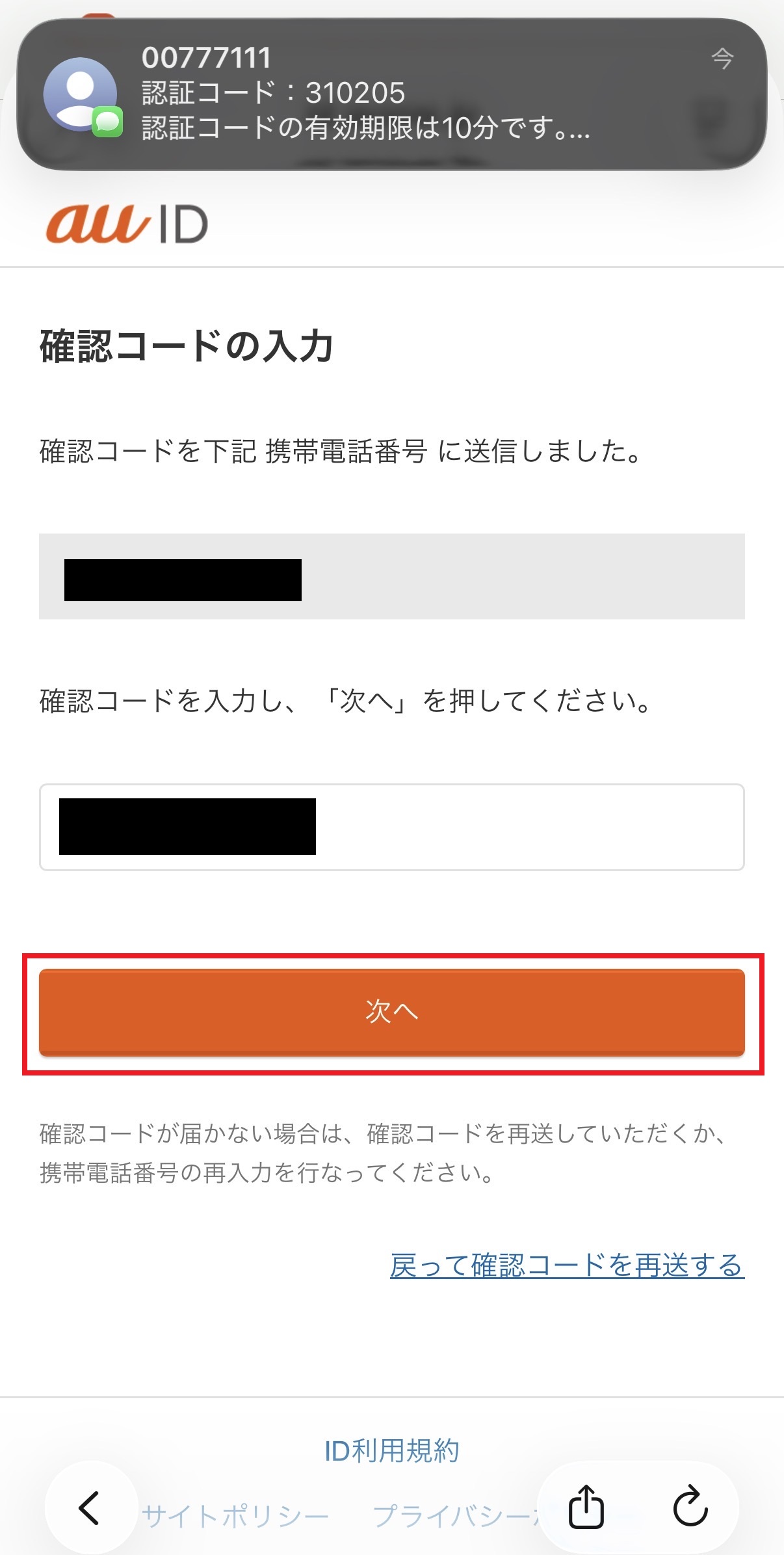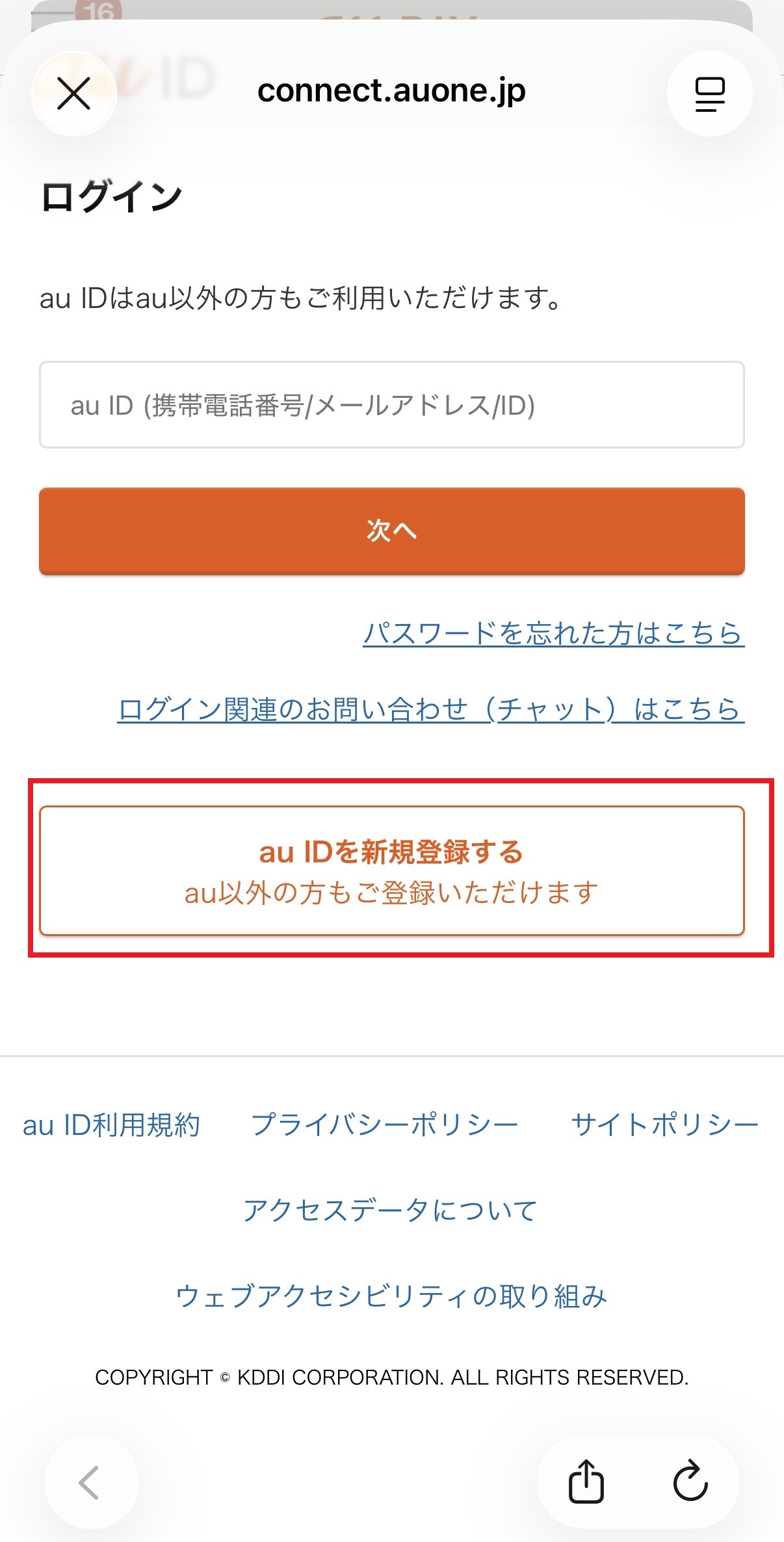 - au IDを持っていない場合は「au IDを新規登録する」から、電話番号を入力して認証を行います。