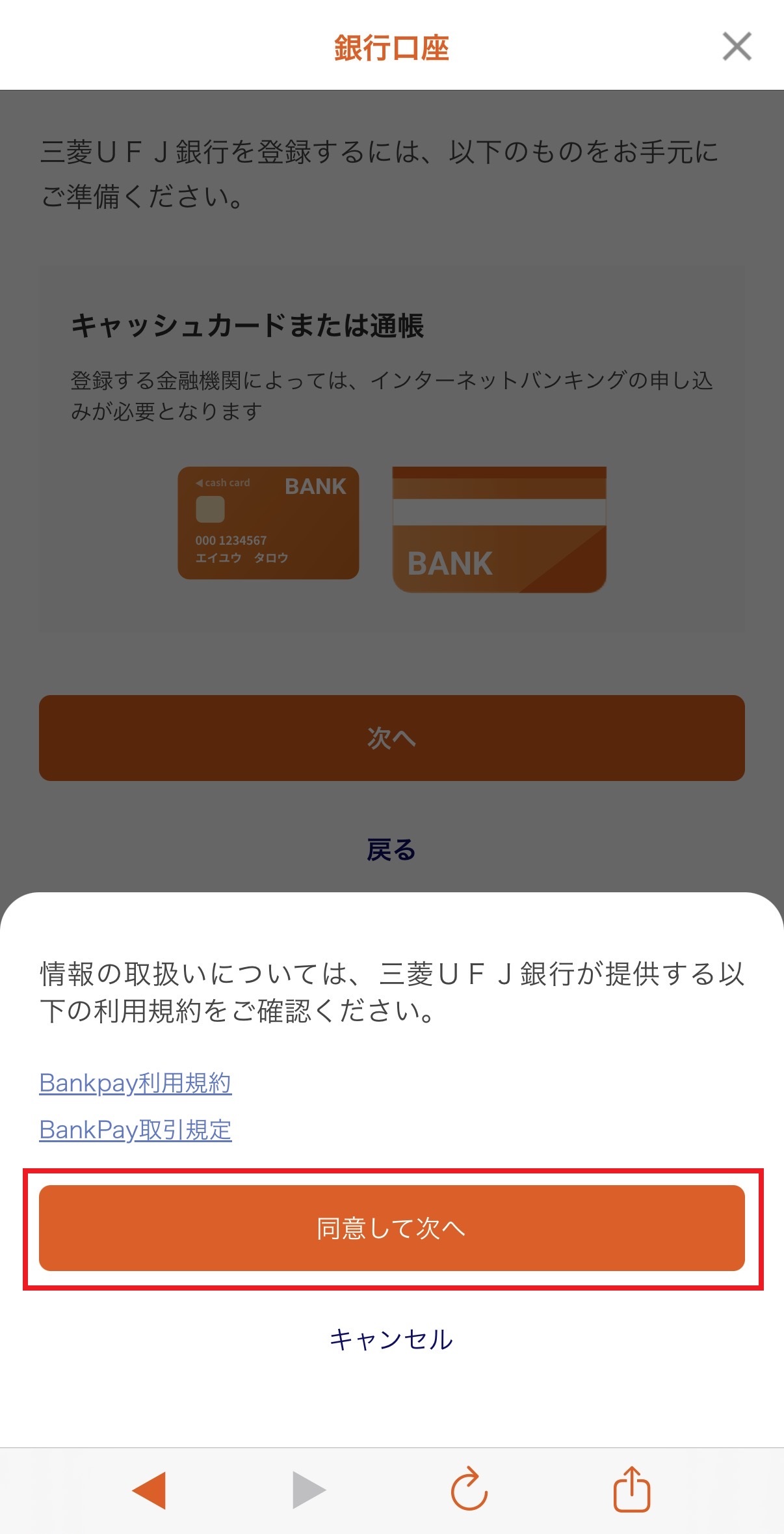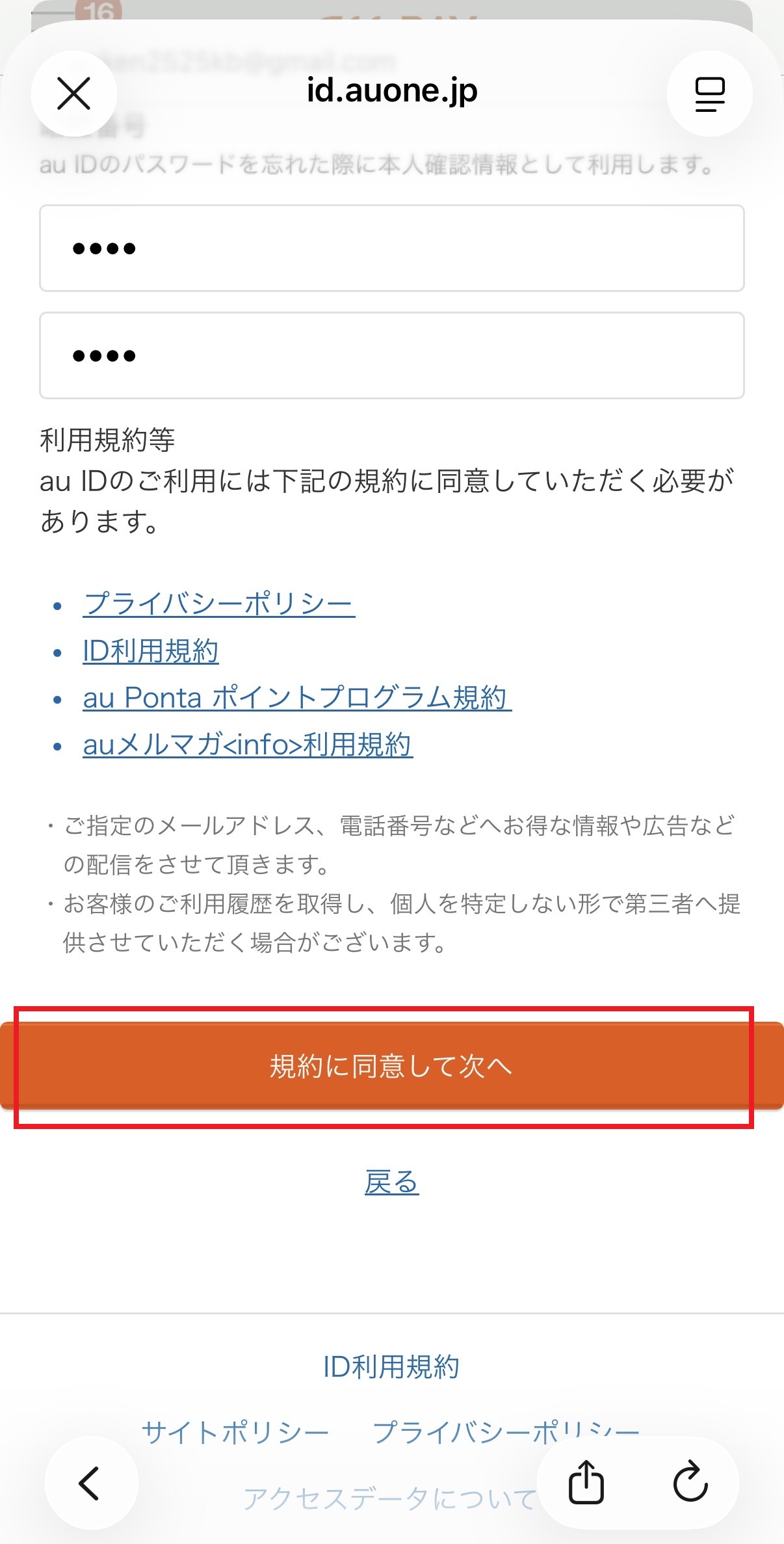 すべて入力が終わったら、「規約に同意して次へ」をタップします。