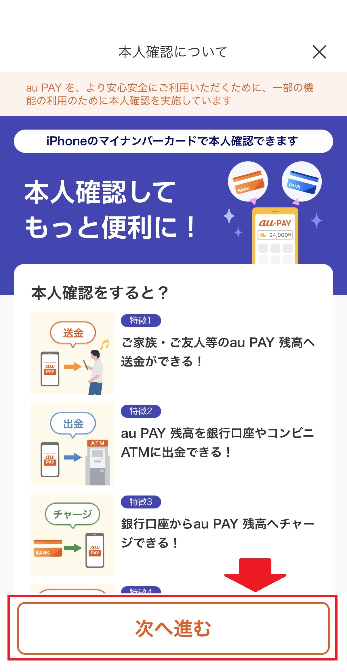 特に初めての方は、今すぐau PAYアプリをダウンロードして「本人確認」を済ませておきましょう。