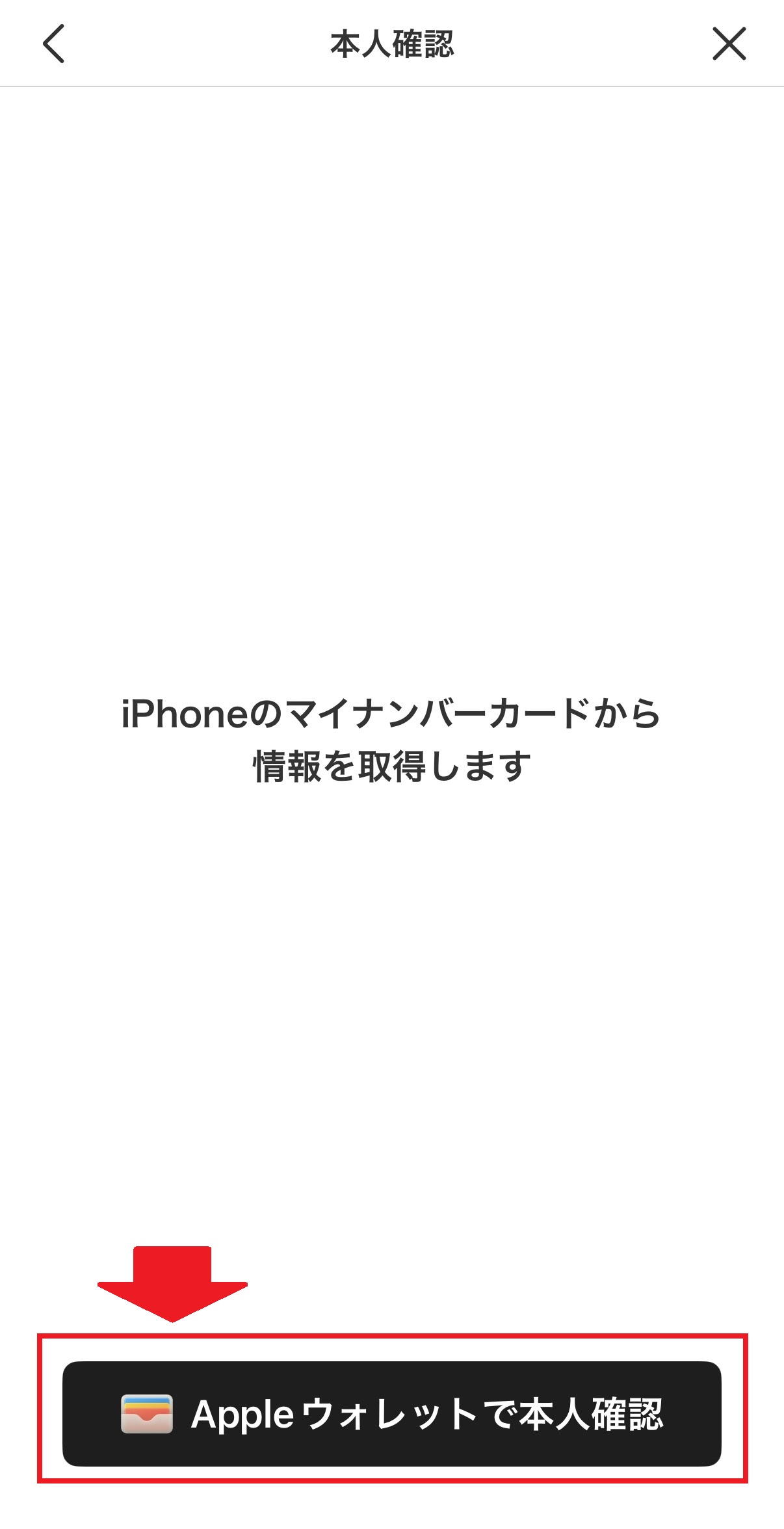 私の場合はマイナンバーカードをiPhoneに登録していましたので、Appleウォレットで本人確認を行えました。