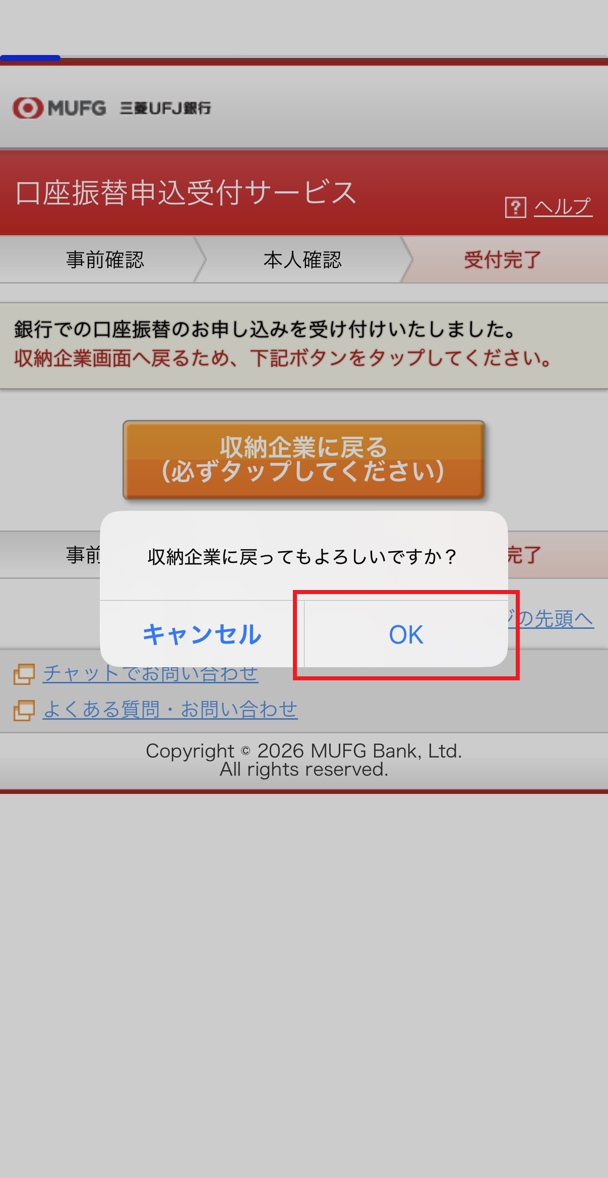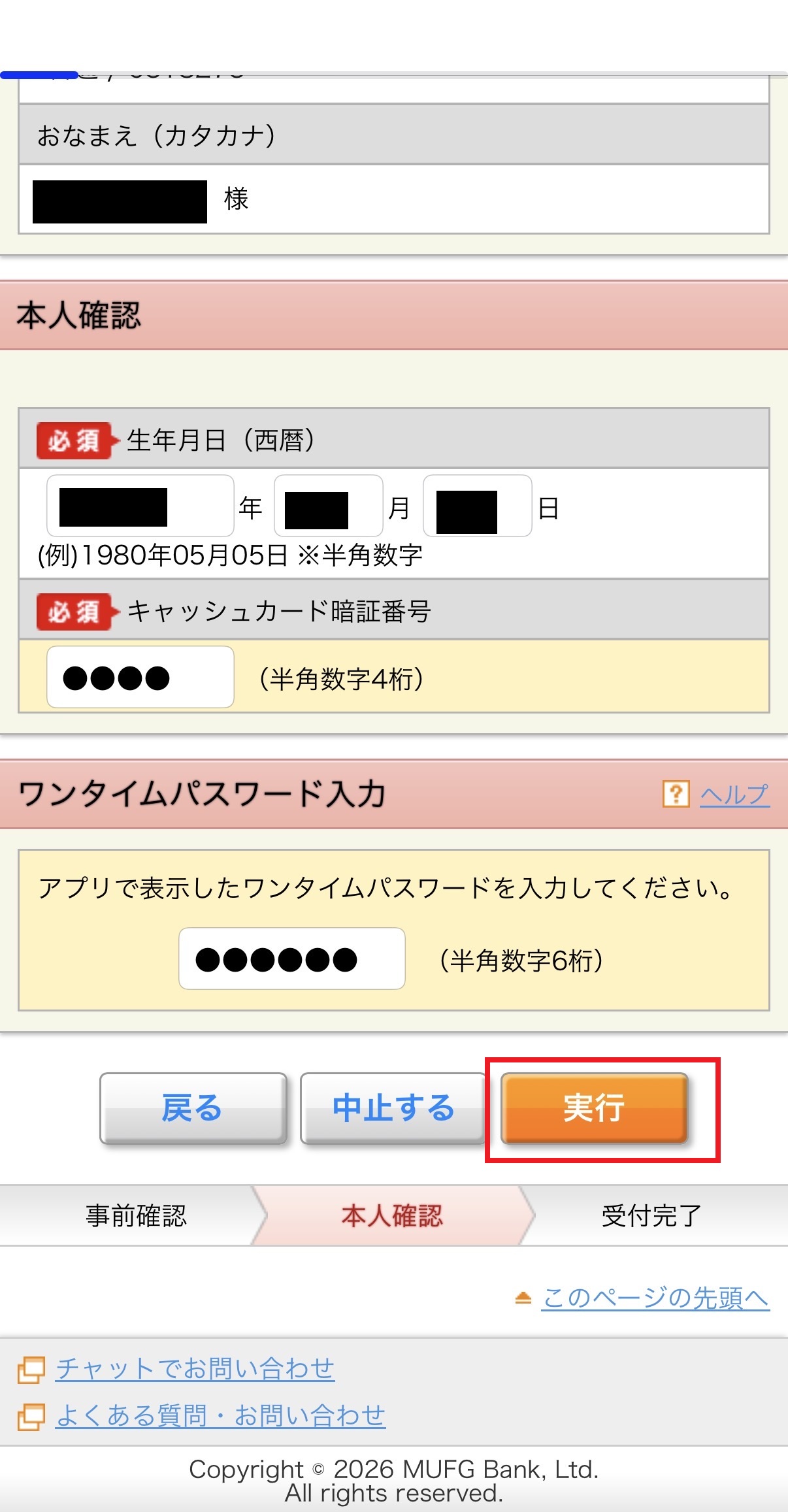 ※ワンタイムパスワードは三菱UFJ銀行アプリを参照して入力します。