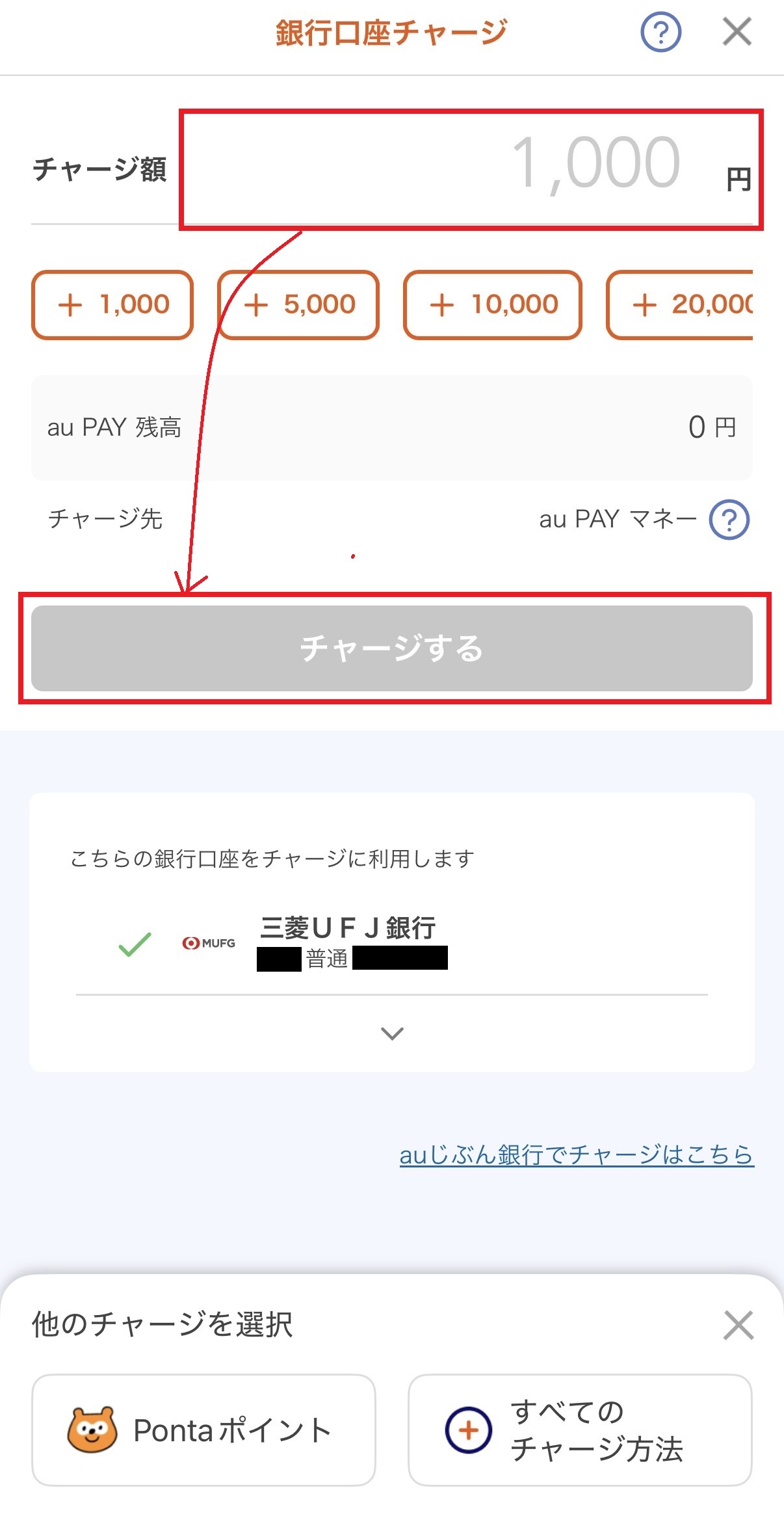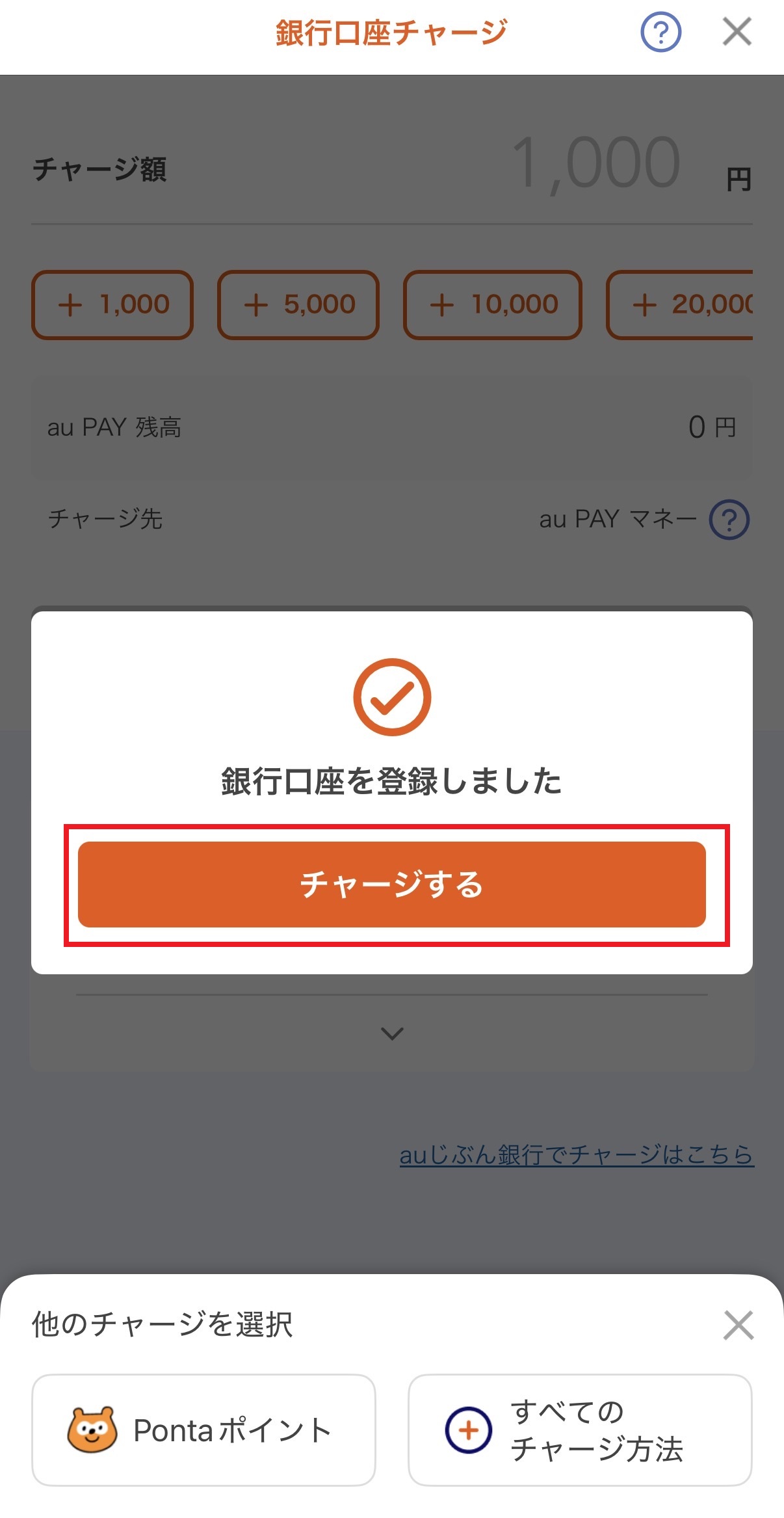 前述のとおり、キャンペーンの適用を受けるためにはau PAY マネーの設定が必要です。そのためにはクレジットカードからのチャージではなく、銀行口座の登録が必要となります。