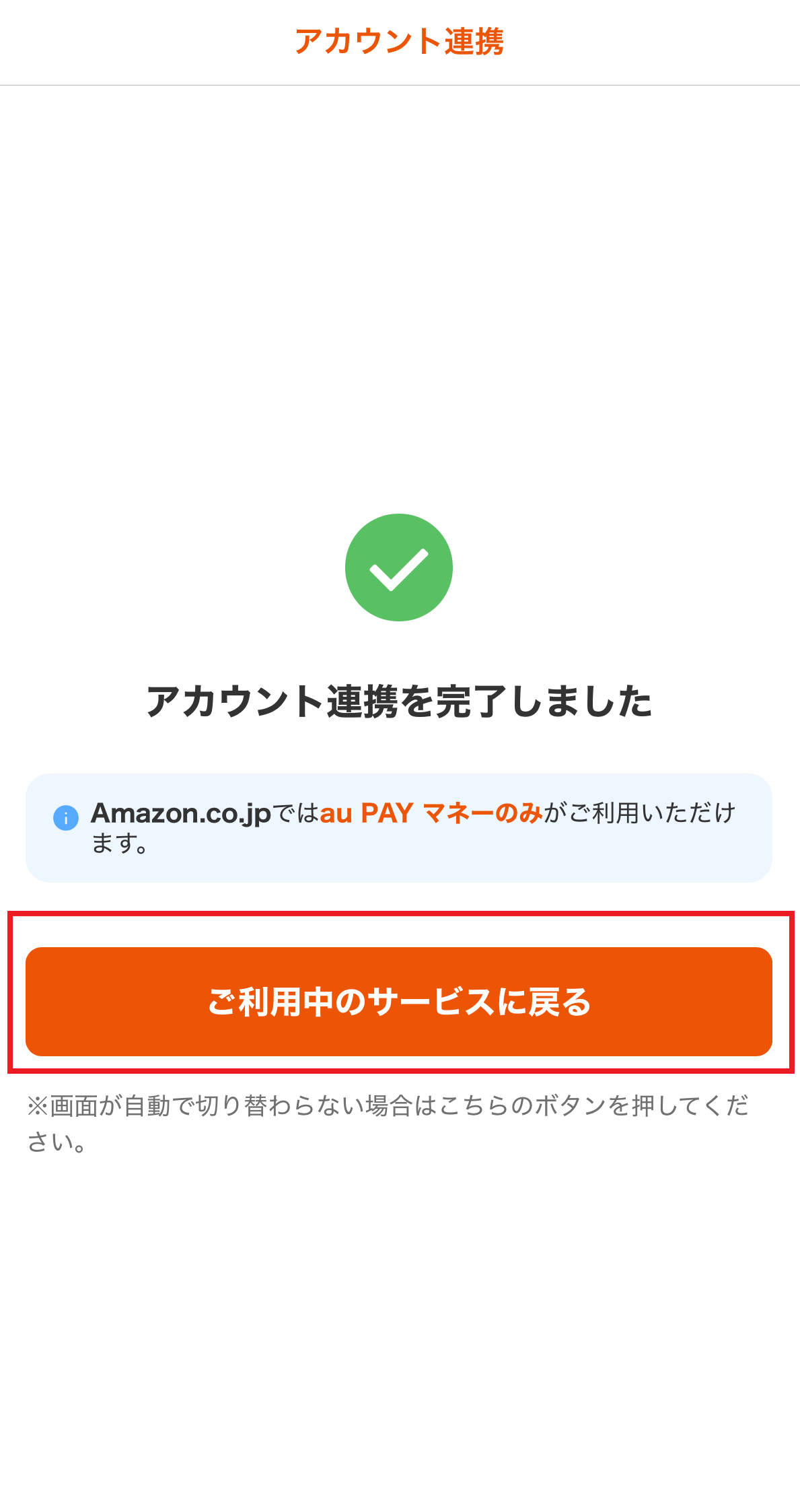 Amazonでの決済には、au PAY残高の中でも「au PAY マネー」の種別のみが使用可能です。