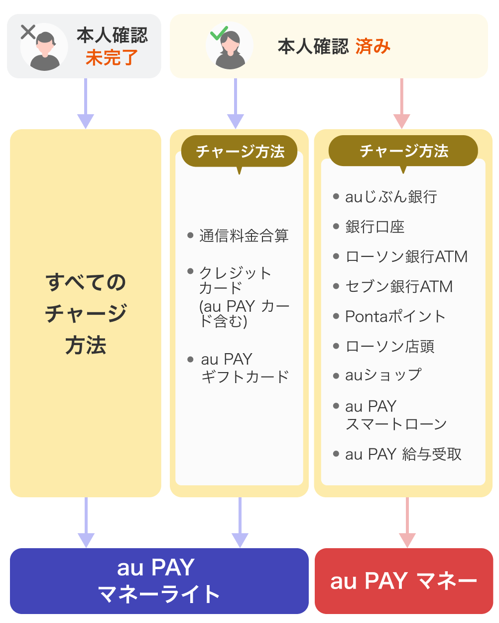 注意しなければいけないのは、au PAYマネーとau PAYマネーライトは違う、という点です。