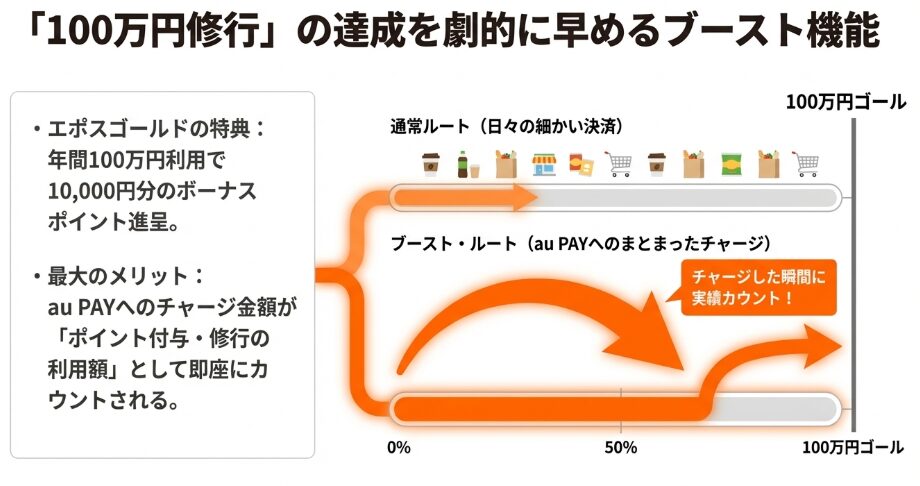 実は、au PAYは非auユーザーこそ使うべき「ポイ活のハブ」なんです。特にエポスゴールドカードを活用した100万円修行との相性は抜群。