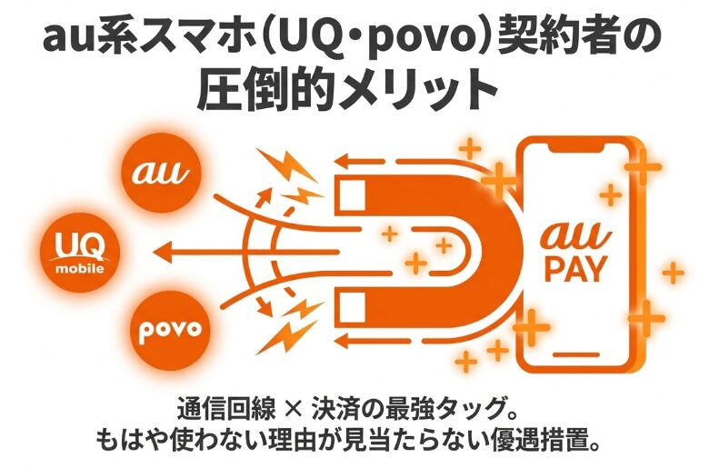 au PAYを語る上で欠かせないのが、au本家やUQモバイル、povo2.0といったau回線ユーザー向けの優遇措置です。