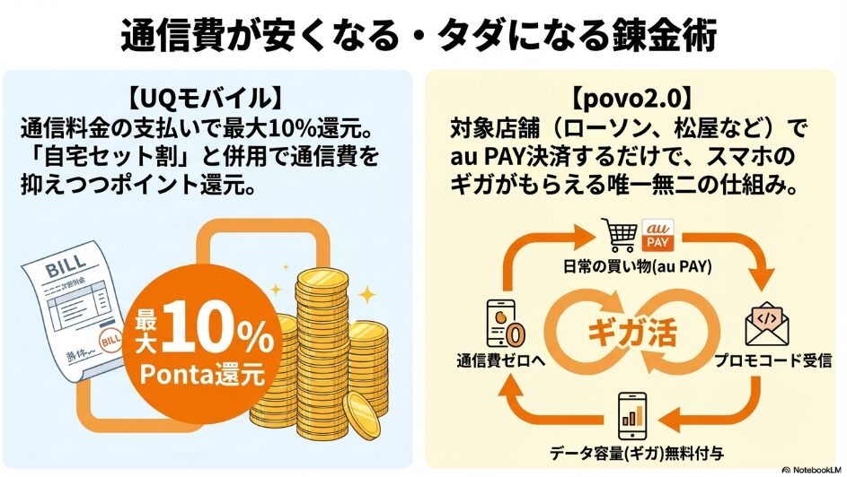 さらに、UQモバイルやpovoといったau系スマホユーザーなら、もはや使わない理由が見当たらないほどの圧倒的な恩恵を受けられます。