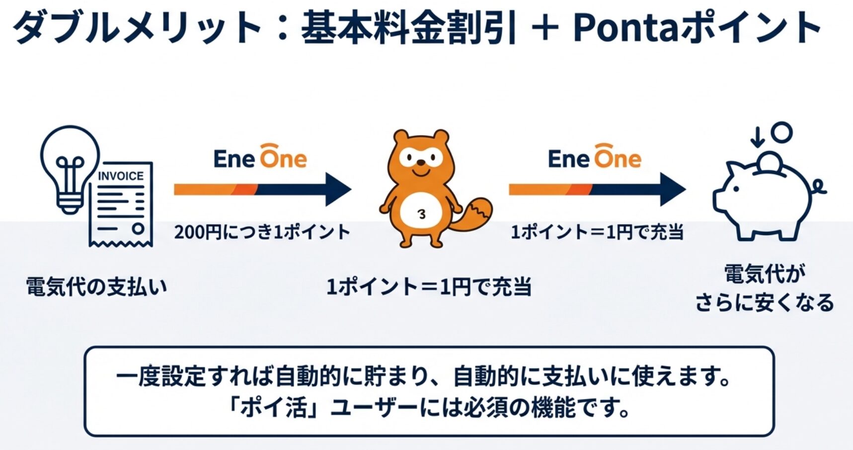 エネワンでんきは、日々の生活でPontaポイントを活用している方にとって非常に相性の良い電力会社です。