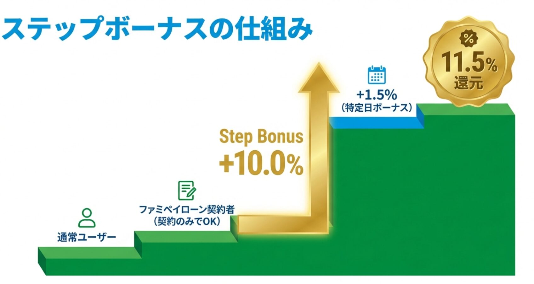 究極の11.5%還元!ファミペイローン(翌月払い)のステップボーナス