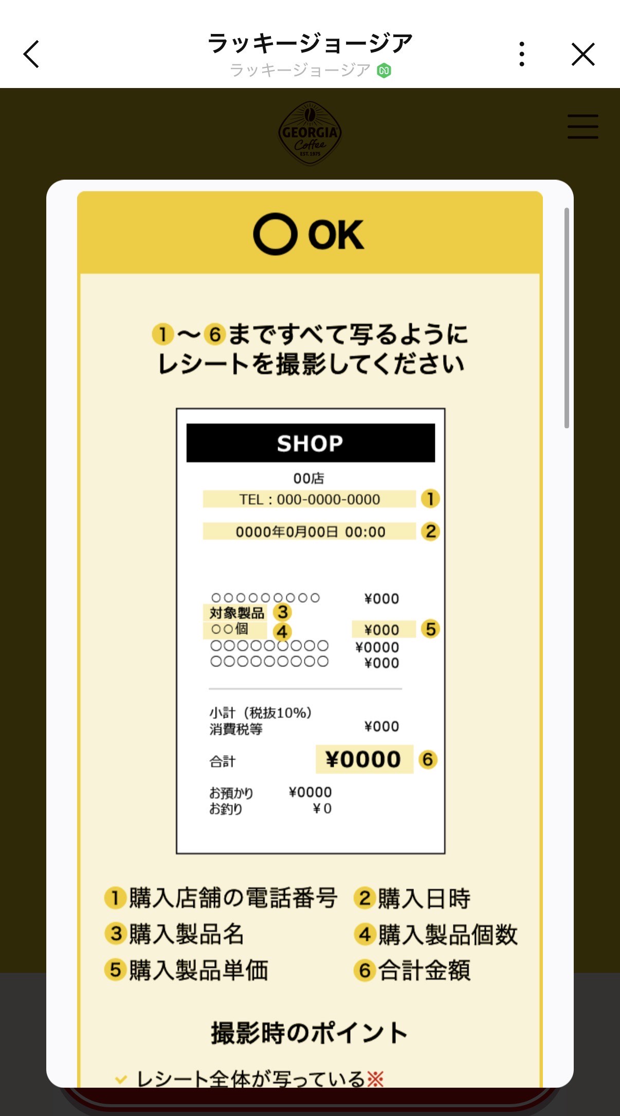 【図解】ラッキージョージアの応募手順・レシートアップロードの方法