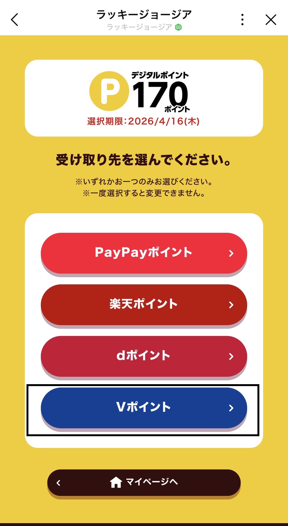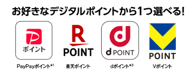 受け取れるデジタルポイントは4つです。この中からポイントを選びます。