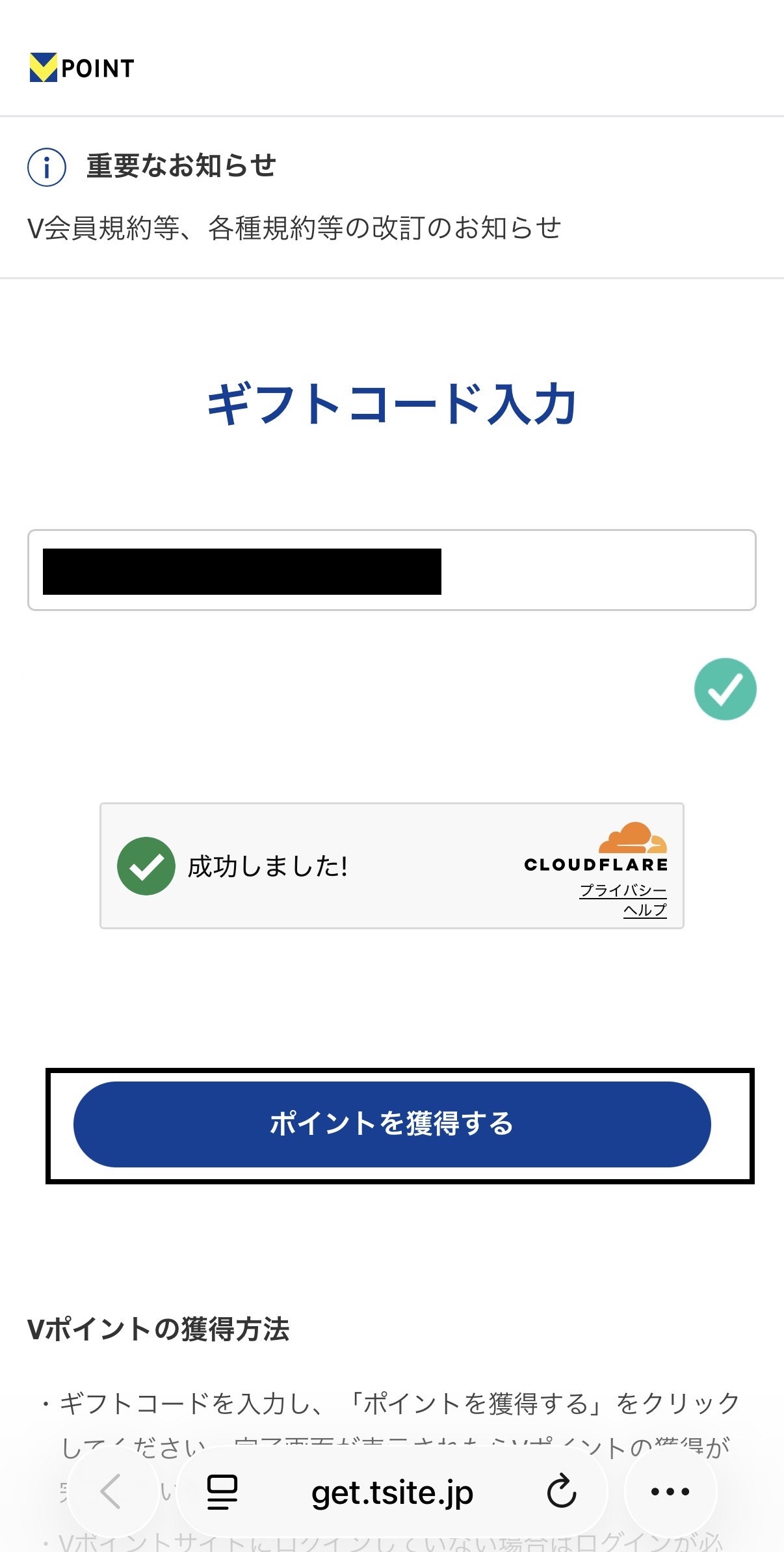 Vポイントアプリに自動遷移します。ポイントを獲得するをタップします。