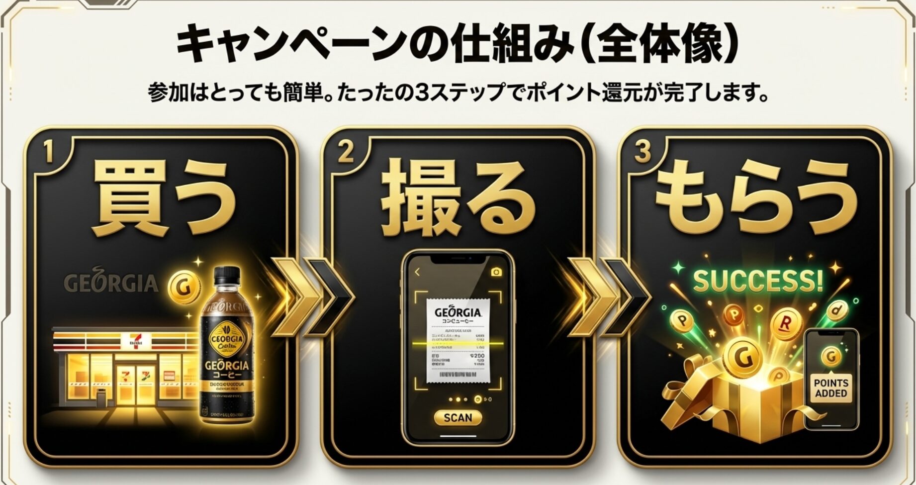 「ラッキージョージア」キャンペーンは、私たちが普段何気なく飲んでいるコーヒーを「資産」に変えてくれる素晴らしい仕組みです。