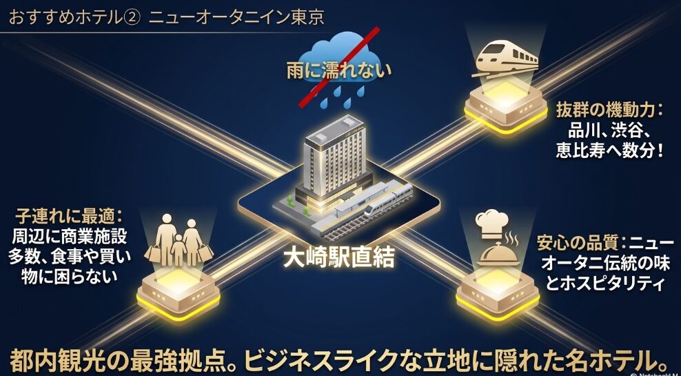 大崎駅直結という抜群の機動力を持つ穴場のホテルです。