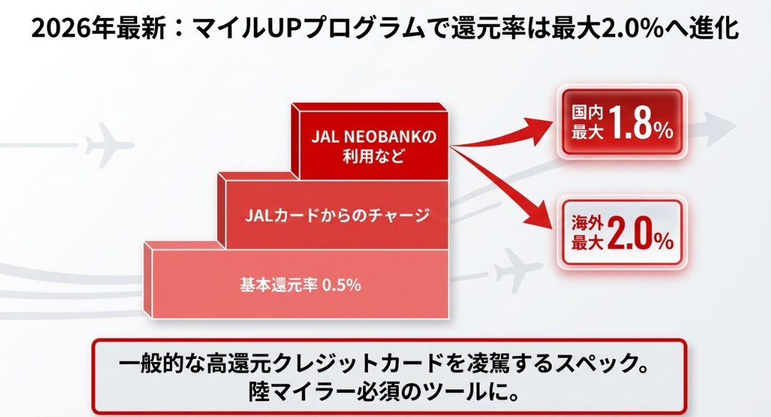 2026年最新!「JAL PayマイルUPプログラム」で還元率が最大1.8%〜2.0%へ