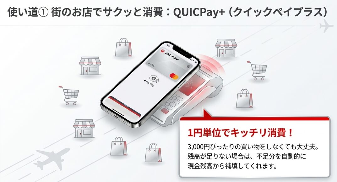 JAL Payの最大の武器は、日常の決済で「JALマイル」が効率よく貯まる点です。