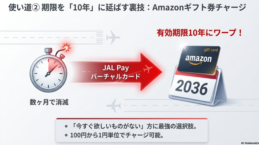 Amazonギフト券に変換してしまえば、有効期限は10年に延びます。