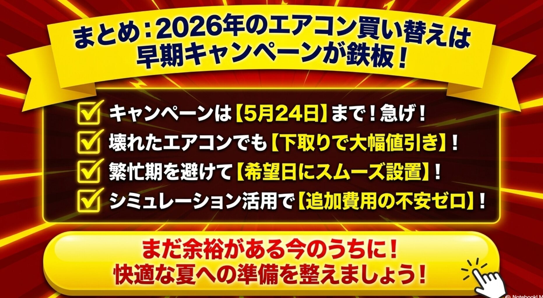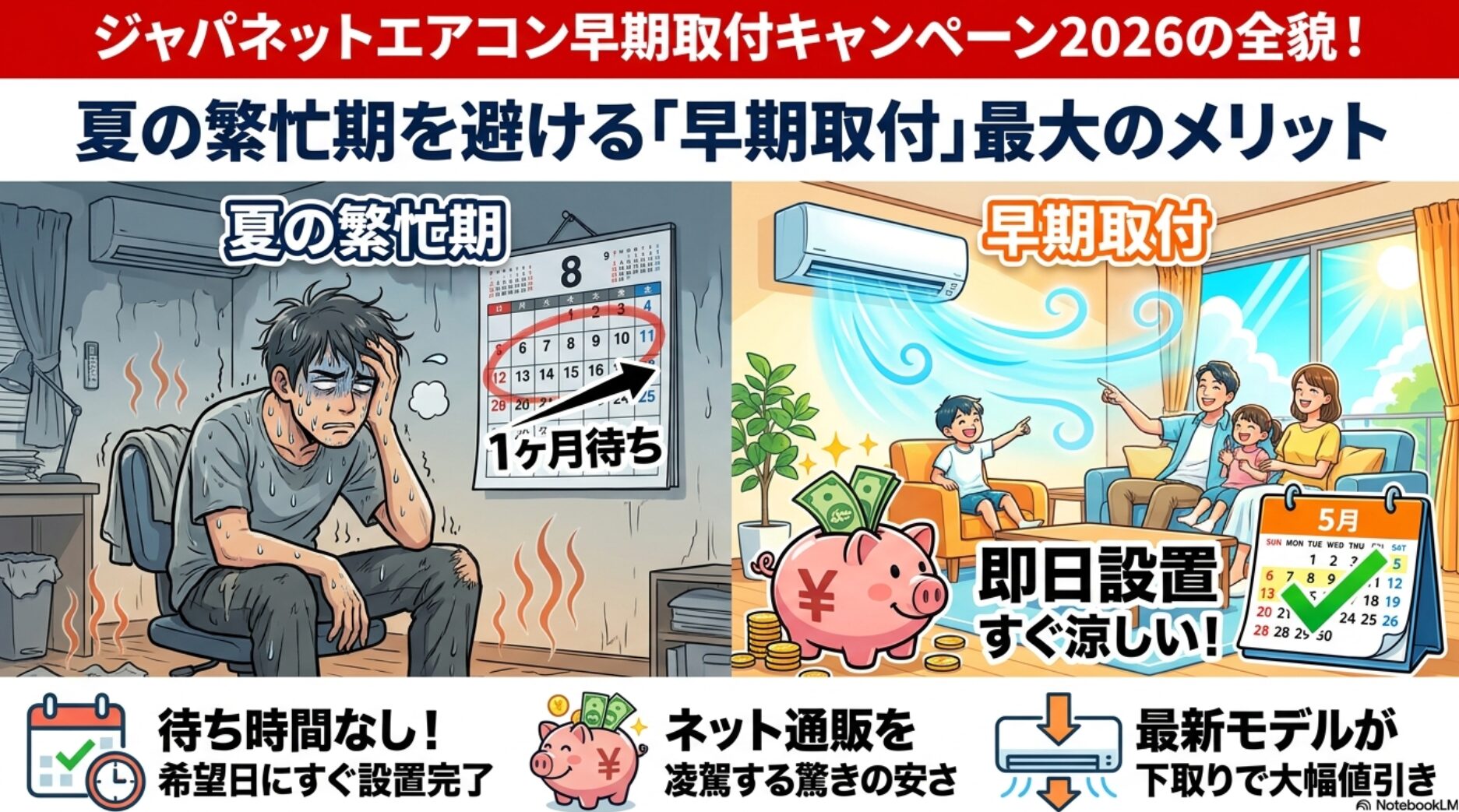 まとめ:2026年のエアコン買い替えはジャパネットの早期キャンペーンが鉄板!