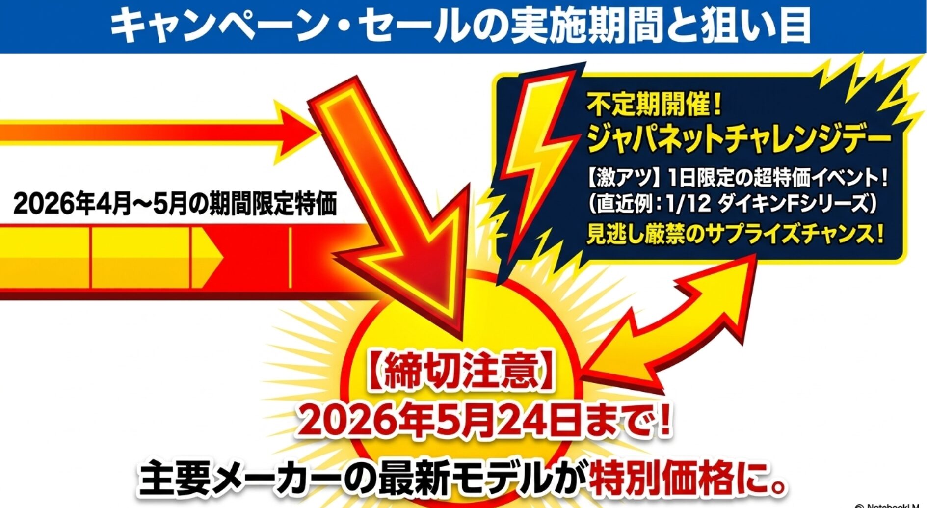 直近では2026年1月12日にダイキンのFシリーズが対象となりました。 こうした「1日限り」のイベントは見逃せません。