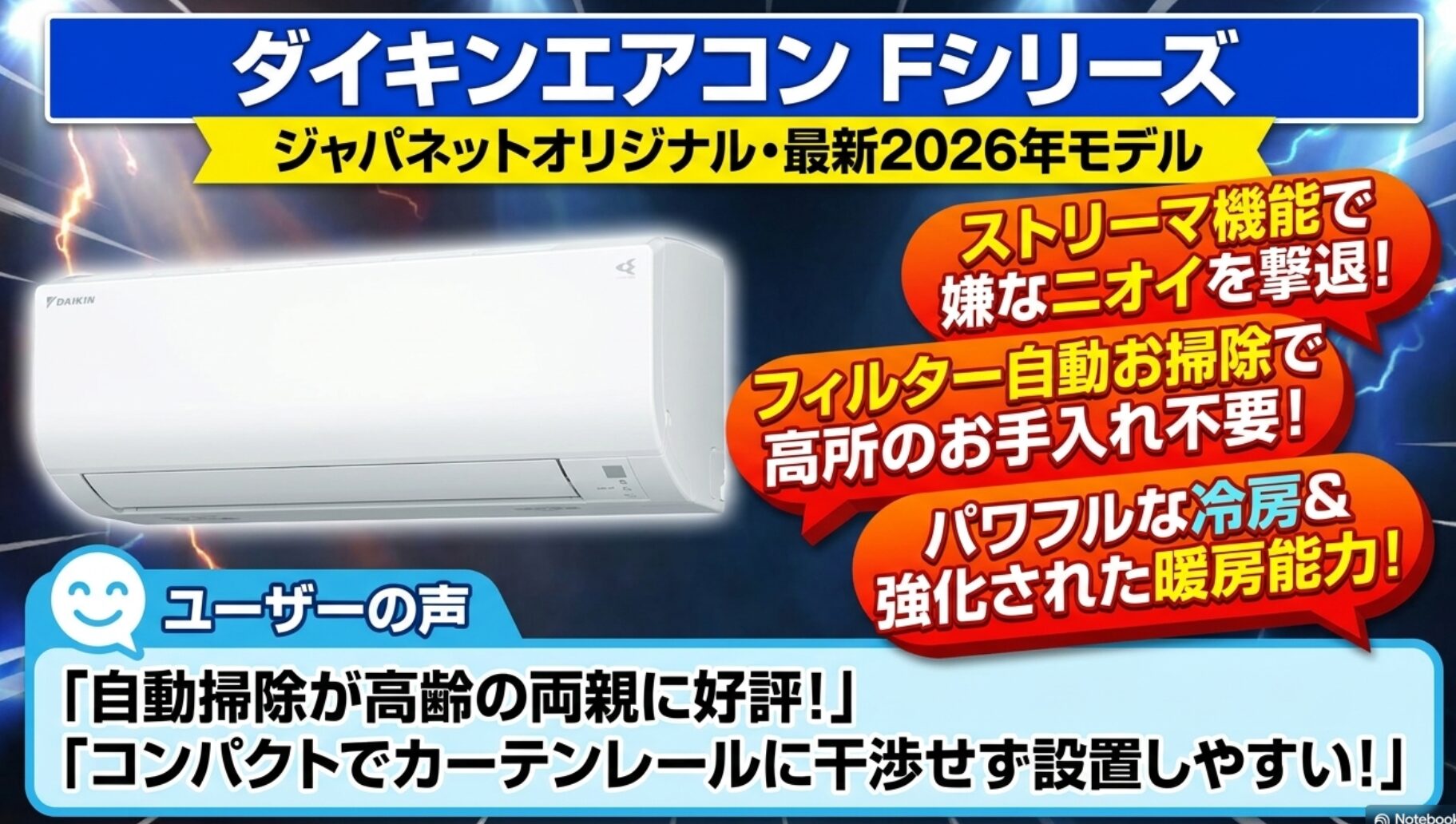 ダイキンの2026年最新モデルで、ジャパネットオリジナル仕様です。