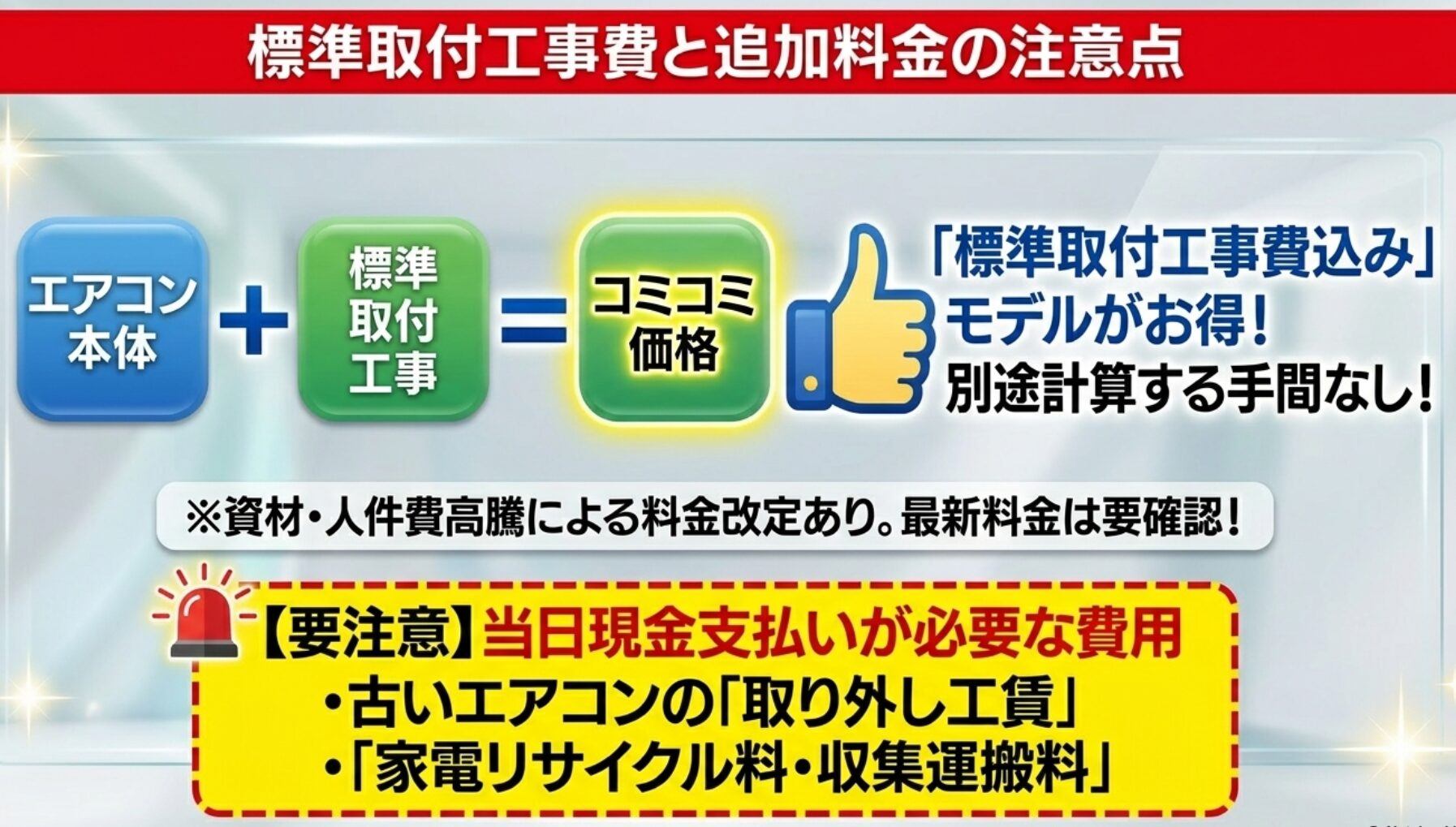 標準取付工事費と追加料金の注意点