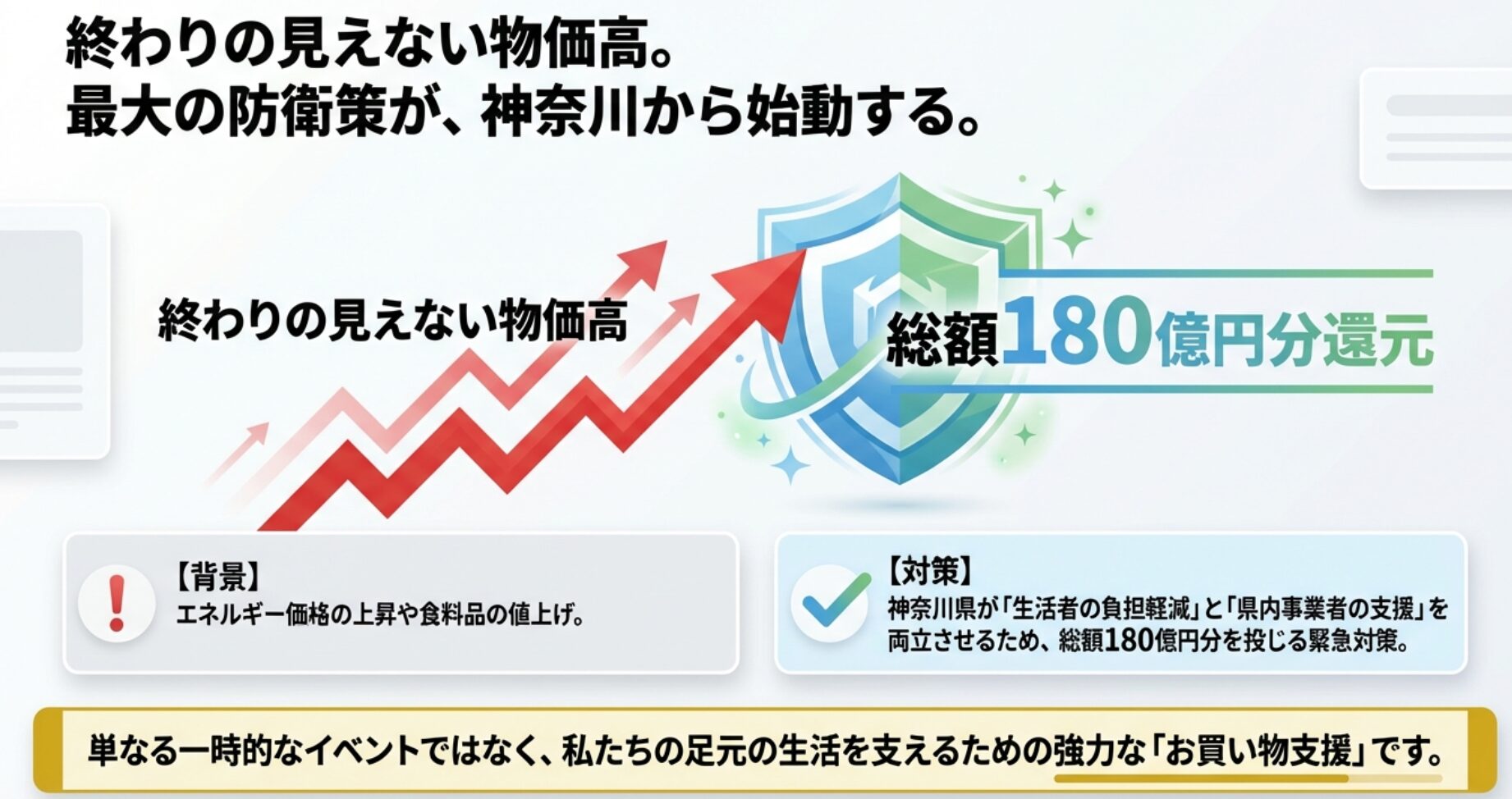 今回のキャンペーンは、単なる一時的なイベントではなく、「生活者の負担軽減」と「県内事業者の支援」を両立させるための緊急対策としての側面が強いのが特徴です。