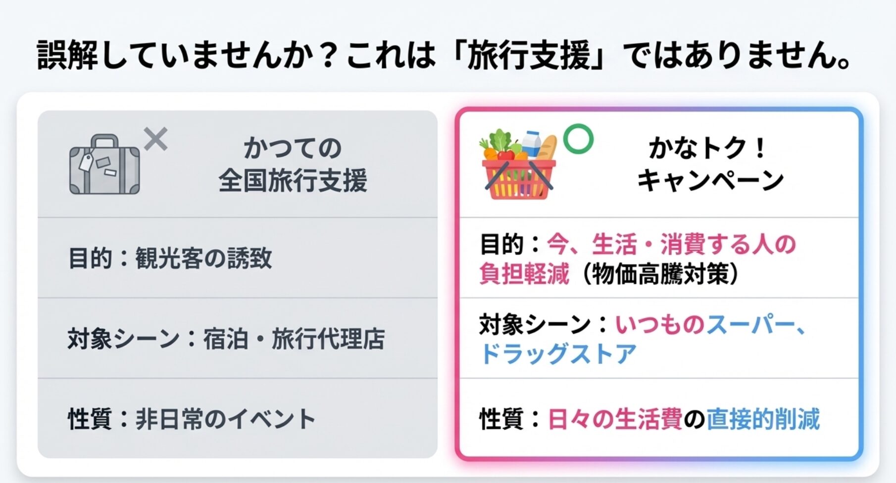 【重要】今回のキャンペーンは「物価高騰対策」!宿泊割引とは何が違う?