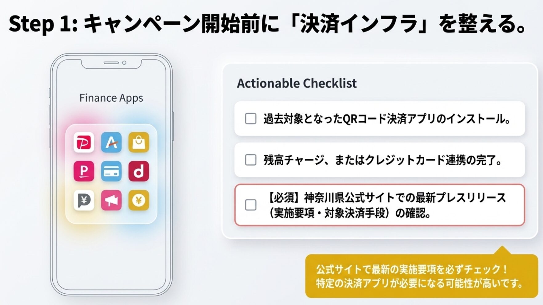 ステップ1:対象のキャッシュレス決済や専用アプリを準備