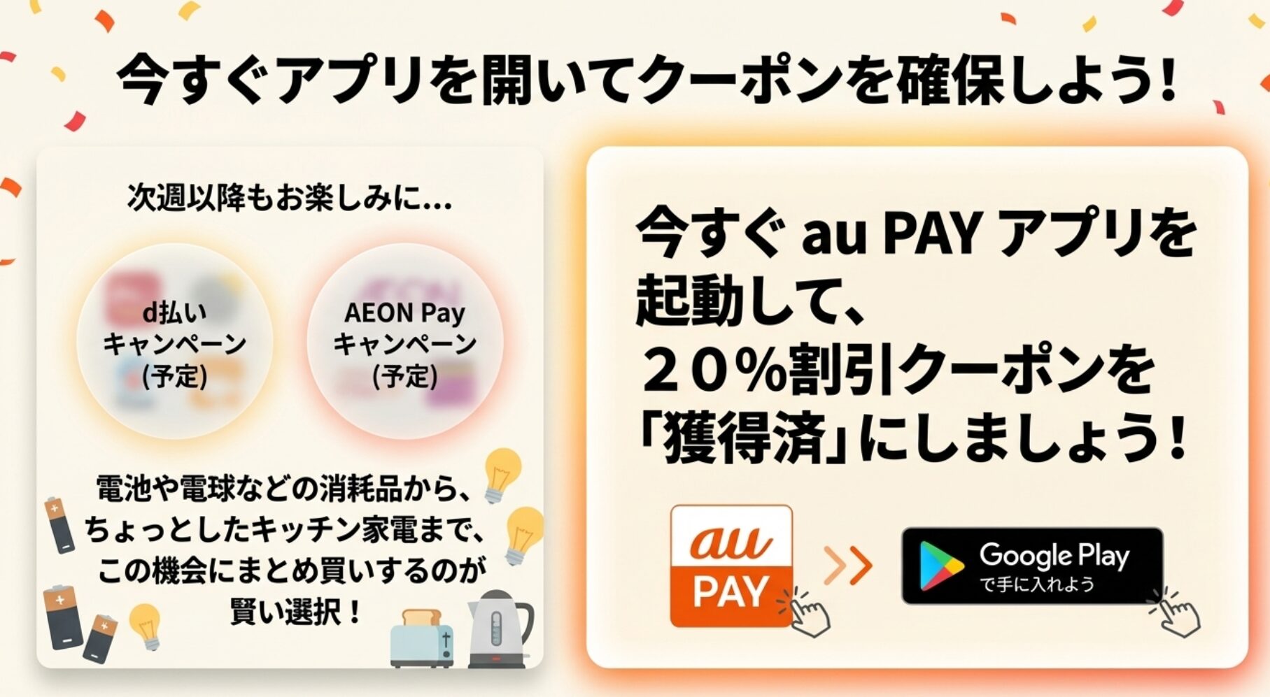 本記事では、現在開催中のau PAYキャンペーンの詳細から、今後予定されているd払い、AEON Payのスケジュール、さらには最大限お得にポイントをゲットするための攻略法まで、徹底解説します!
