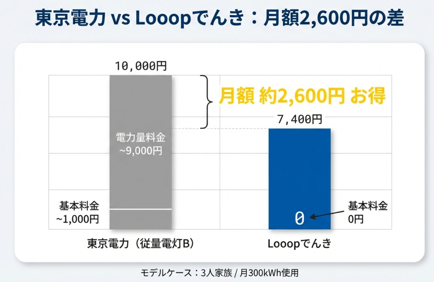 | 項目 | 東京電力 (従量灯B) | Looopでんき | 差額 (節約額) |