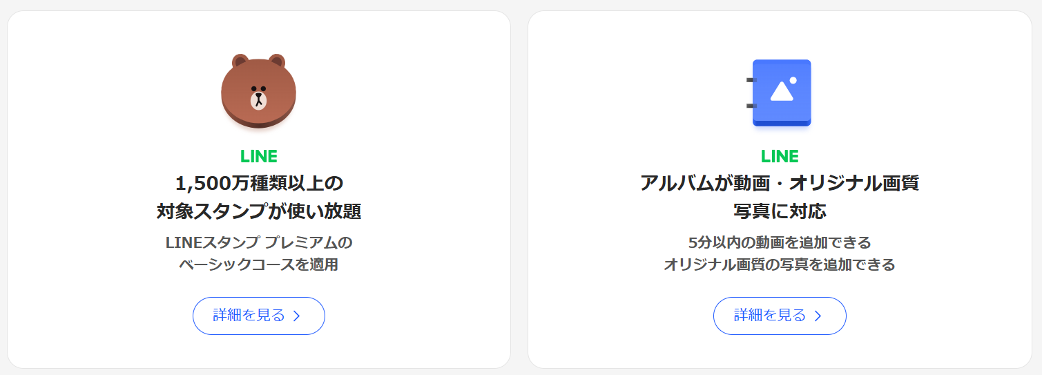 「LINEスタンププレミアム」の対象スタンプ(1,200万種類以上)が追加料金なしで使い放題になります。