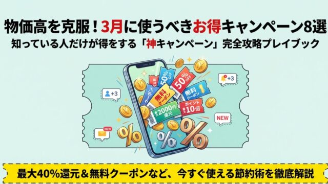 【重要】物価高を克服!3月に使うべきお得キャンペーン8選!最大40%還元&無料クーポンを紹介!