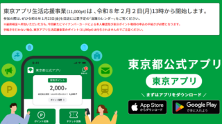 「東京アプリ」で1万1000円相当のポイント付与へ 2月2日からスタート! 東京都の**「東京アプリ」で1万1000円分のポイント付与が2月2日からスタート! このブログでも先日東京アプリのポイント付与に...