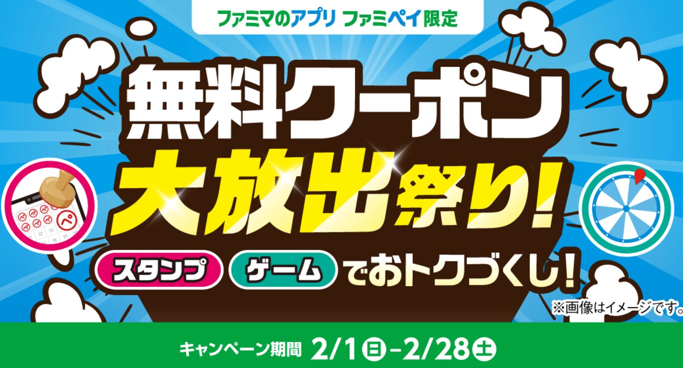 総額3億円相当!のクーポン&ファミマポイントが当たる!「無料クーポン大放出祭り!」2月1日(日)開始です。