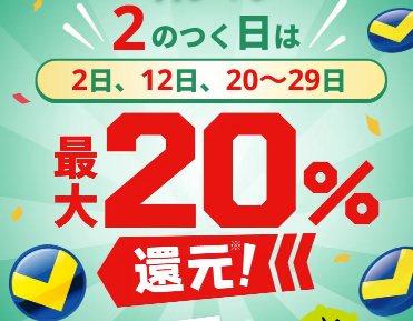 VPASS「2の付く日はポイント最大20%還元」